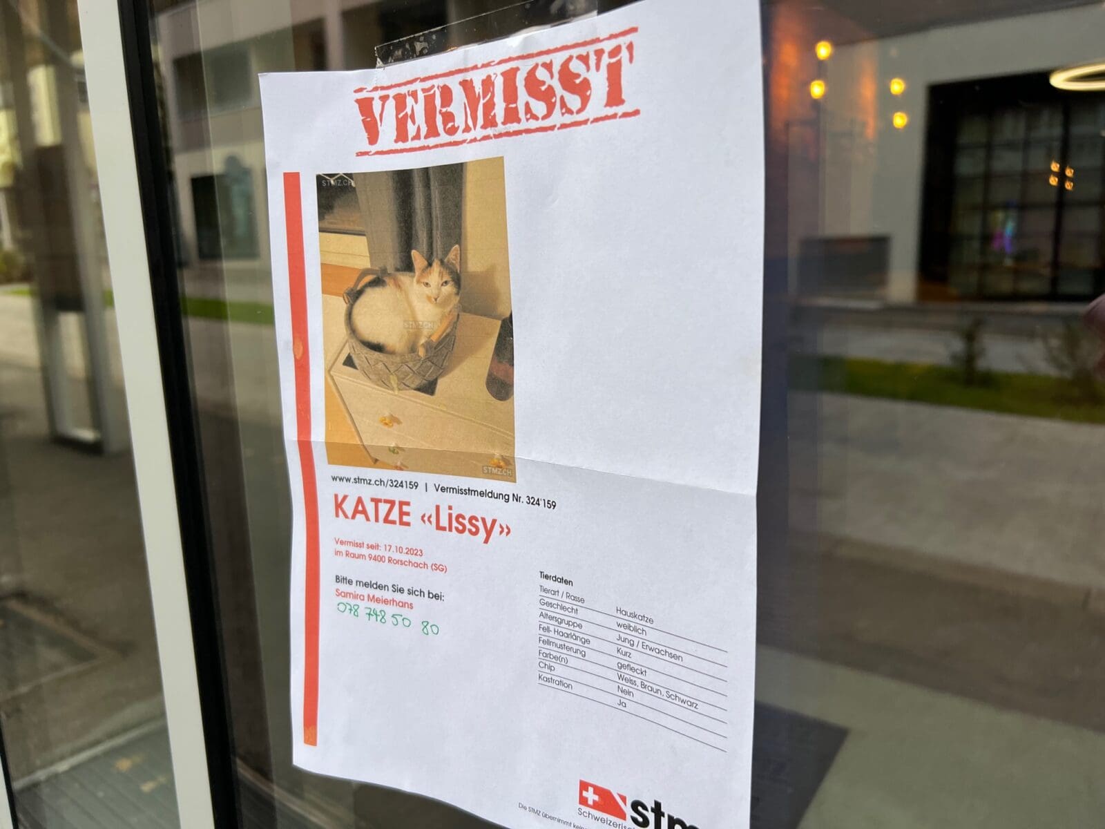 Diese Katze wird seit einer Woche vermisstThemen:Rorschach 24. Oktober 2023 - 15:53Wer Rita Meierhans weiterhelfen kann darf sich direkt bei ihr melden.Teilen mit: Einen Link per E-Mail an einen Freund senden (Wird in neuem Fenster geöffnet) E-Mail Drucken (Wird in neuem Fenster geöffnet) Drucken Auf Facebook teilen (Wird in neuem Fenster geöffnet) Facebook Auf X teilen (Wird in neuem Fenster geöffnet) X Auf WhatsApp teilen (Wird in neuem Fenster geöffnet) WhatsApp Gefällt mir:Gefällt mir Wird geladen …Newsletter abonnieren Bitte dieses Feld leer lassenBitte wähle, ob Du über jeden neuen Beitrag sofort oder lieber jeden Morgen gegen 9 Uhr eine Zusammenfassung der neusten Beiträge erhalten möchtest.Liste(n) auswählen: Neues vom Echo (Zusammenfassung) Neues vom Echo (Sofortbenachrichtigung) Dieses Feld wird benötigt.Prüfen Sie Ihren Posteingang und den Spamordner, um Ihr Abonnement zu bestätigen.