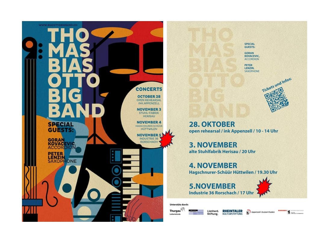 Die Konzerttournee in der Ostschweiz bringt die Big Band am Sonntag, 5. November 2023 mit Goran Kovacevic und Peter Lenzin in die Industrie36 nach Rorschach.