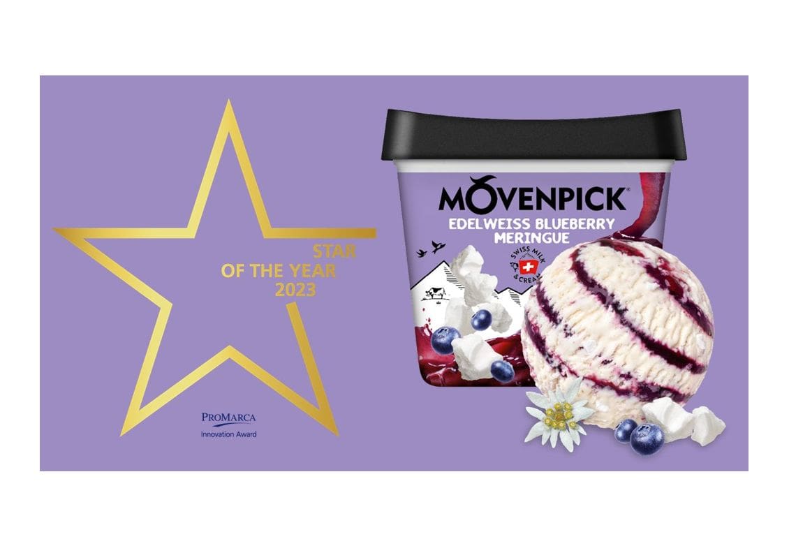 Der Markenartikelverband Promarca hat gestern diverse Produktauszeichnungen vorgenommen. Die Auszeichnung «Star of the Year» (beste Neuheit 2023) geht mit dem Produkt Mövenpick Edelweiss Blueberry Meringue in unsere Region nach Goldach. Das Produkt gibt’s sowohl im 900ml Bidon wie auch im 165ml Becher.