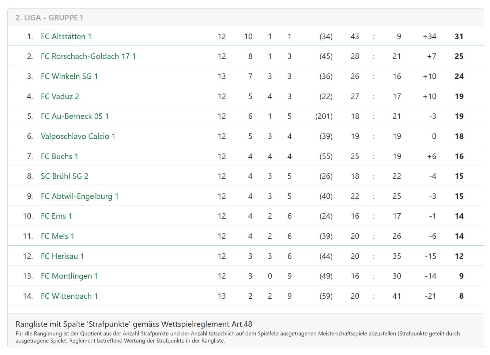 Heute Nachmittag hat das Team von Trainer Marc Blumer im Rheintal beim FC Buchs anzutreten. Anpfiff ist um 14 Uhr. Das Resultat wird nachgereicht. Als Beitragsbild oben die Resultate der gestrigen Partien in dieser Gruppe, unten die aktuelle Tabelle.