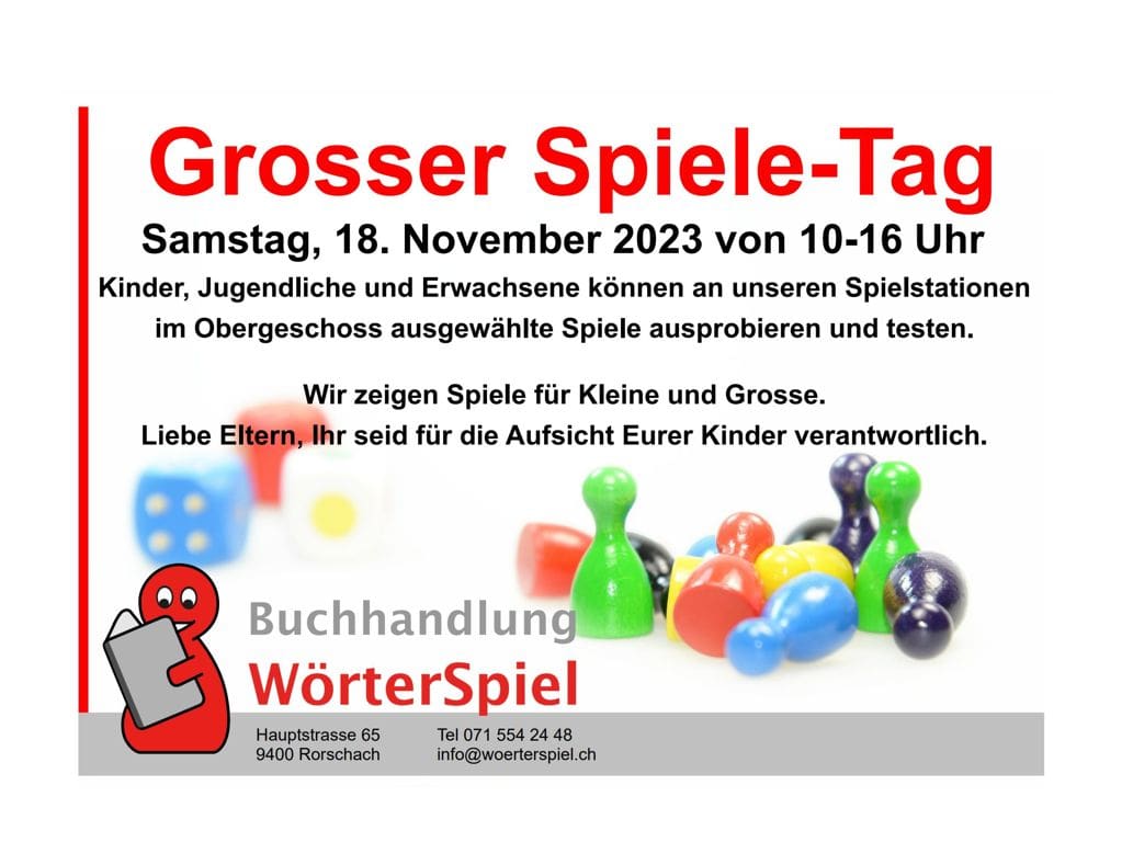 Kinder, Jugendliche und Erwachsene können an den Spielstationen im Obergeschoss ausgewählte Spiele ausprobieren und testen. Es sind Spiele für Kleine und Grosse. Das Ganze läuft von 10 bis 16 Uhr und die Eltern sind für die Aufsicht der Kinder verantwortlich.