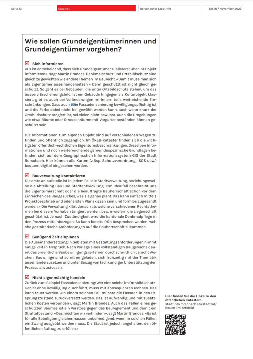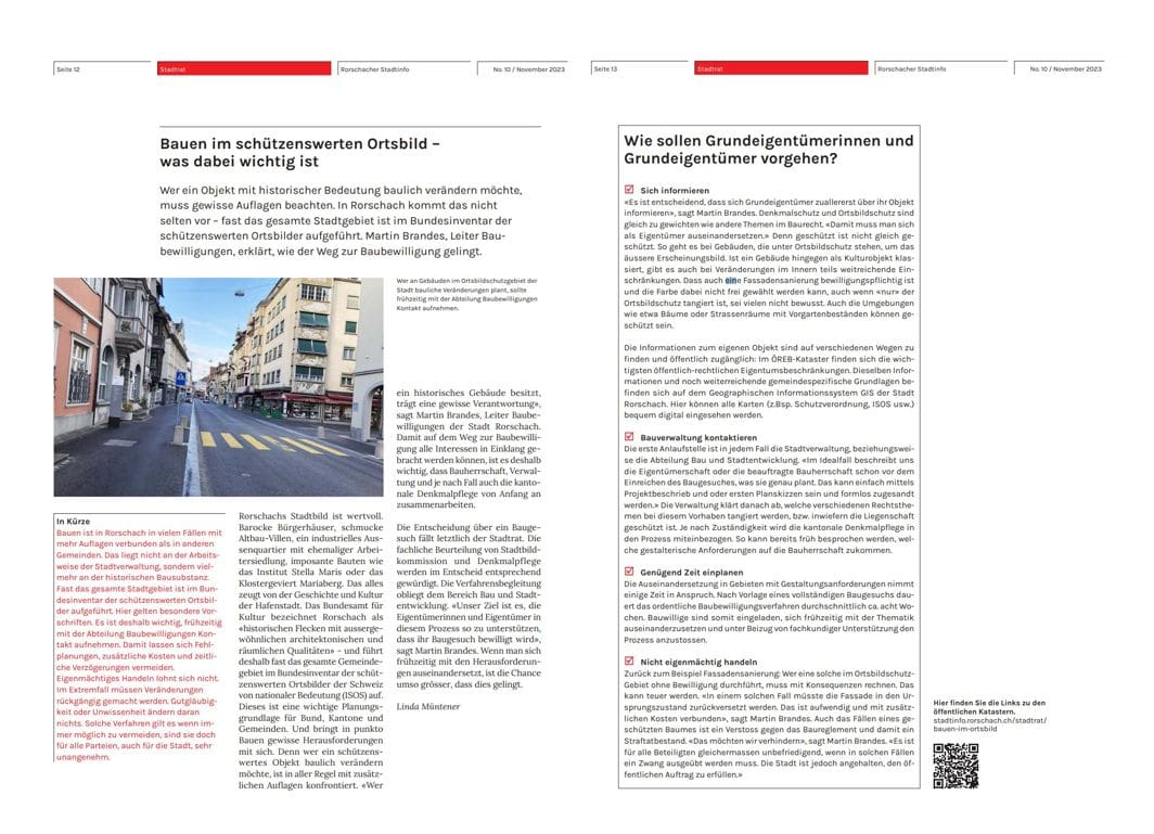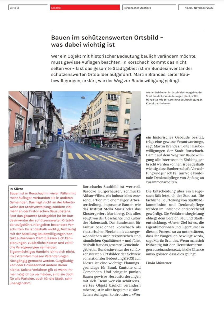 Auf den Seiten 12 und 13 erklärt Linda Müntener, was wichtig ist, wenn man in einem schützenswerten Ortsbild bauen will. Den ganzen Artikel finden Interessierte auch hier.