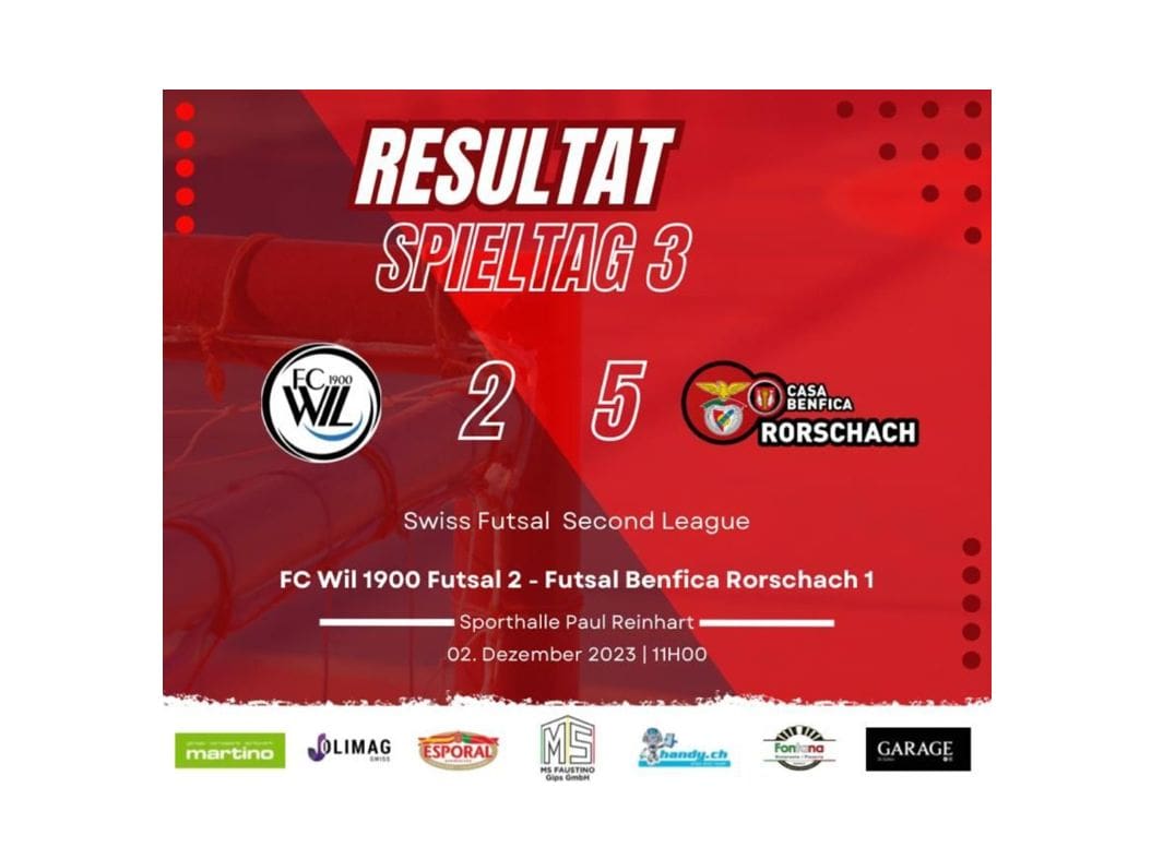 Futsal Benfica Rorschach 1 gewinnt in einem spannenden Spiel gegen FC Wil 1900 Futsal 2 mit 5:2 und sichert sich drei wichtige Punkte in der Meisterschaft. Von Anfang an war Benfica dominant und erzielte früh das Führungstor durch Mete Sahin. Sie kontrollierten das Spielgeschehen und hatten mehrere gute Chancen, konnten aber zunächst keine weiteren Tore erzielen. FC Wil nutzte eine ihrer wenigen Gelegenheiten und glich aus.