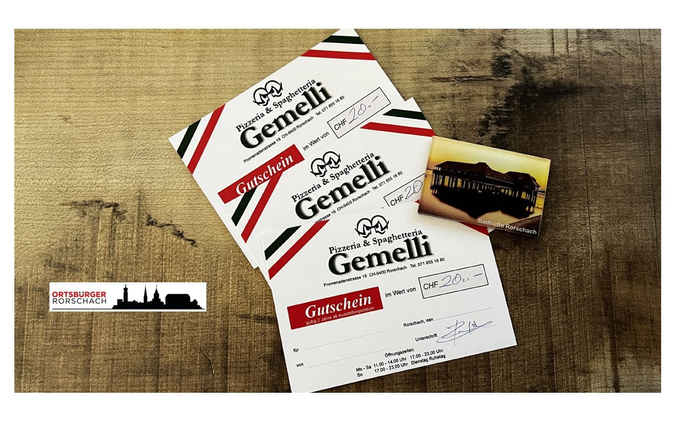 Die Ortsbürger schreiben dazu: „Lust, wieder mal mit der Familie gemütlich essen gehen? Im bekannten Ristorante Gemelli warten viele feine Menus auf Sie! Wir verlosen heute einen Gutschein im Wert von CHF 80.–. Als wir die bestellten Gutscheine im Wert von 60 Franken holen wollten, hat Raffaele Gemelli spontan einen Gutschein dazugepackt. Herzlichen Dank!“. Wenn man von dieser Aktion profitieren will muss man aber mitmachen…