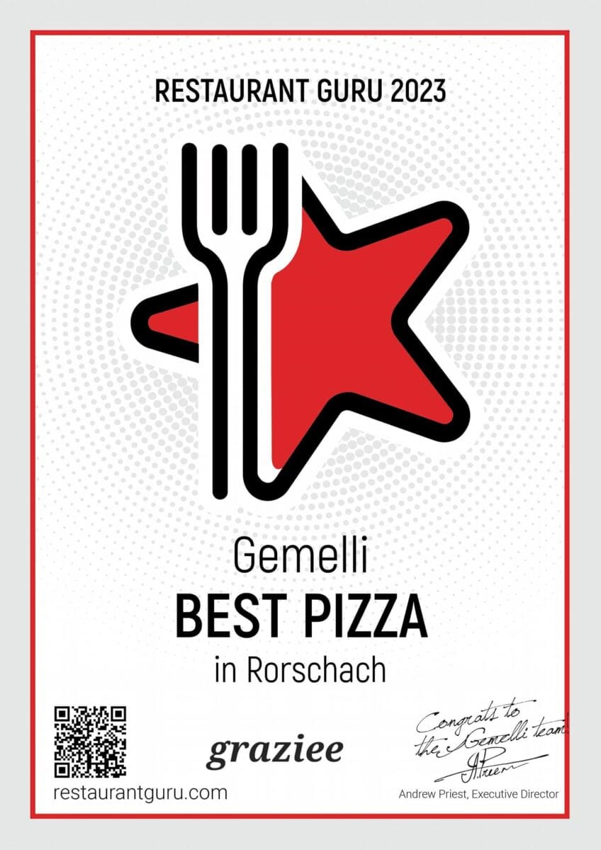 Ein weiterer Award ist in der Gastroszene aufgetaucht und diesen heimst sich Raffaele von der Pizzeria Gemelli an der Promenadenstrasse 19 in Rorschach ein.