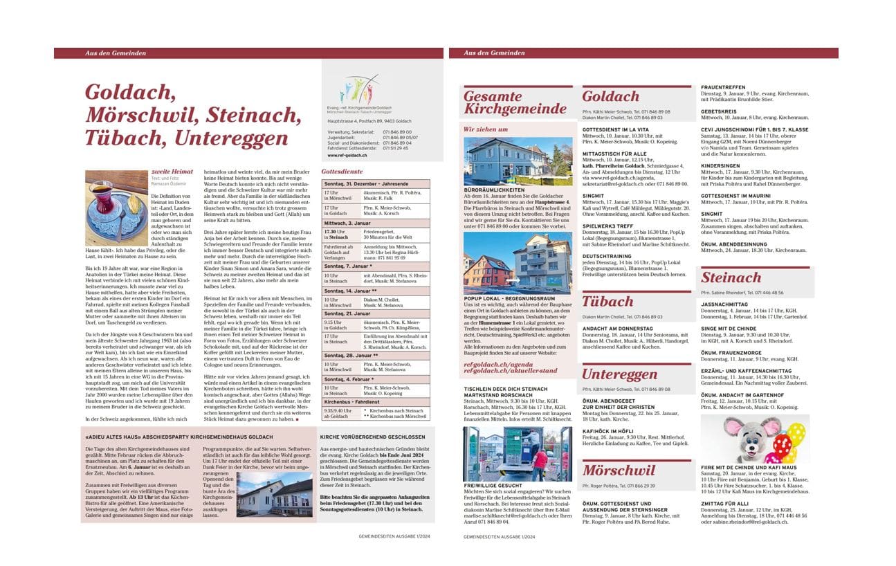 Das Angebot von Ref. Goldach im Januar 2024Themen:GoldachKulturPartnerRef. GoldachRegion 30. Dezember 2023 - 05:10Voilà. Weiterführende Informationen findet man immer auch auf der Homepage. Teilen mit: Einen Link per E-Mail an einen Freund senden (Wird in neuem Fenster geöffnet) E-Mail Drucken (Wird in neuem Fenster geöffnet) Drucken Auf Facebook teilen (Wird in neuem Fenster geöffnet) Facebook Auf X teilen (Wird in neuem Fenster geöffnet) X Auf WhatsApp teilen (Wird in neuem Fenster geöffnet) WhatsApp Gefällt mir:Gefällt mir Wird geladen …Newsletter abonnieren Bitte dieses Feld leer lassenBitte wähle, ob Du über jeden neuen Beitrag sofort oder lieber jeden Morgen gegen 9 Uhr eine Zusammenfassung der neusten Beiträge erhalten möchtest.Liste(n) auswählen: Neues vom Echo (Zusammenfassung) Neues vom Echo (Sofortbenachrichtigung) Dieses Feld wird benötigt.Prüfen Sie Ihren Posteingang und den Spamordner, um Ihr Abonnement zu bestätigen.