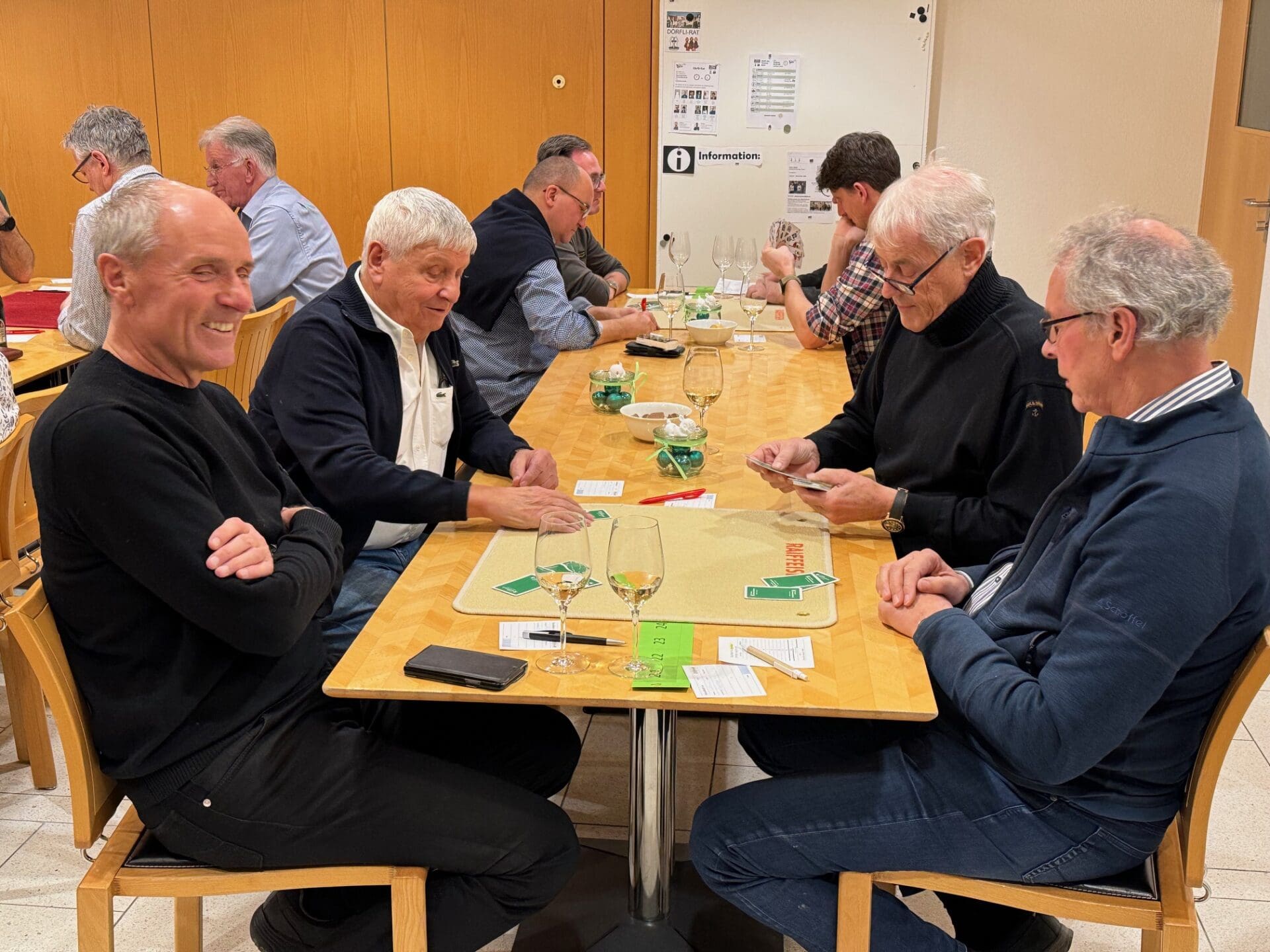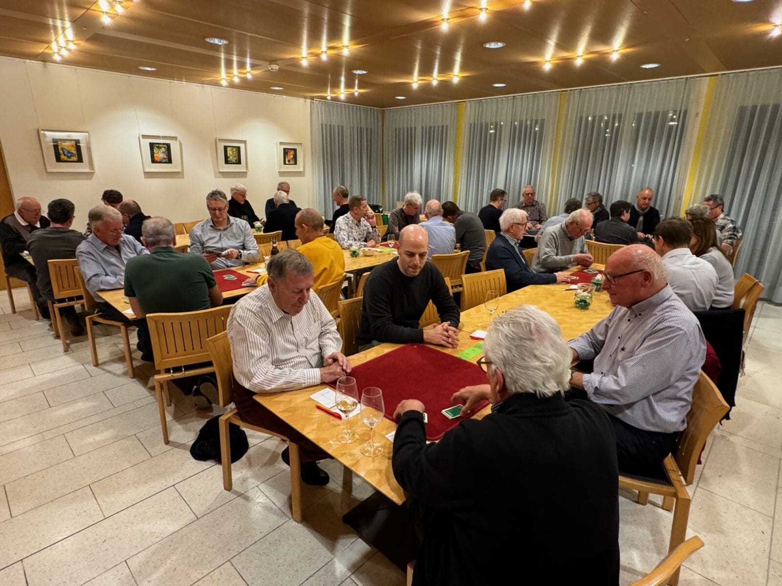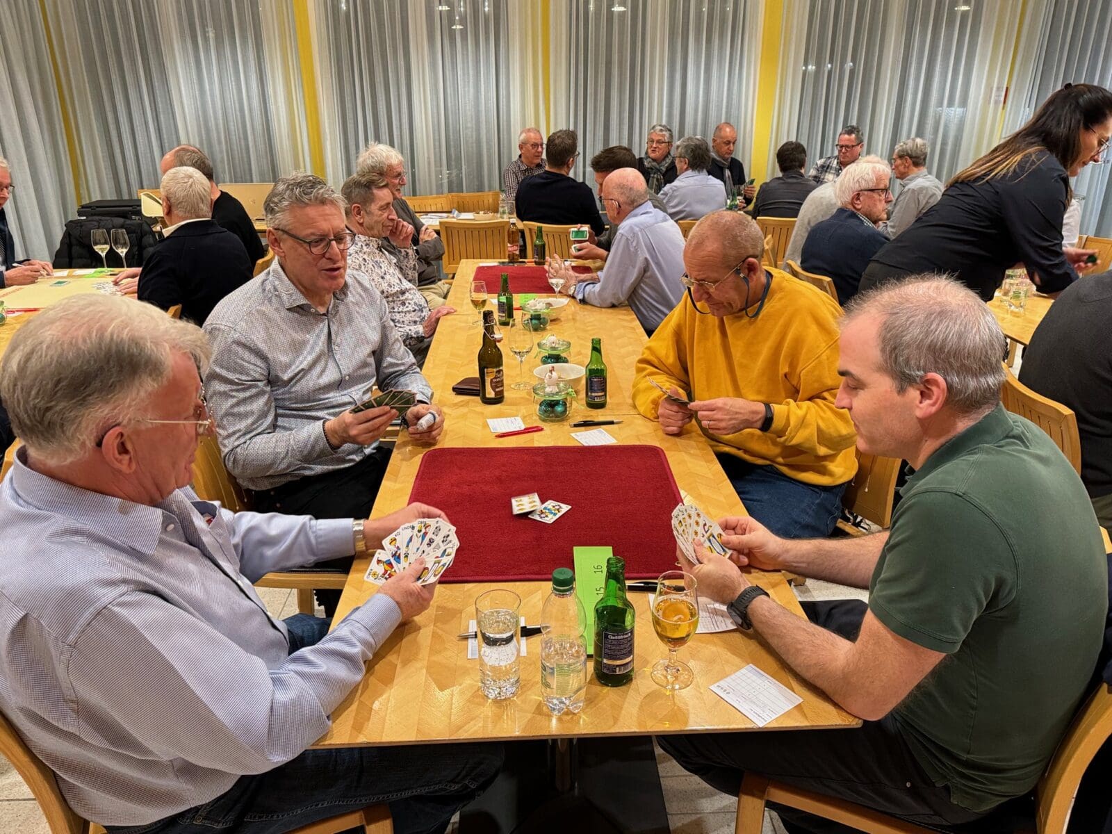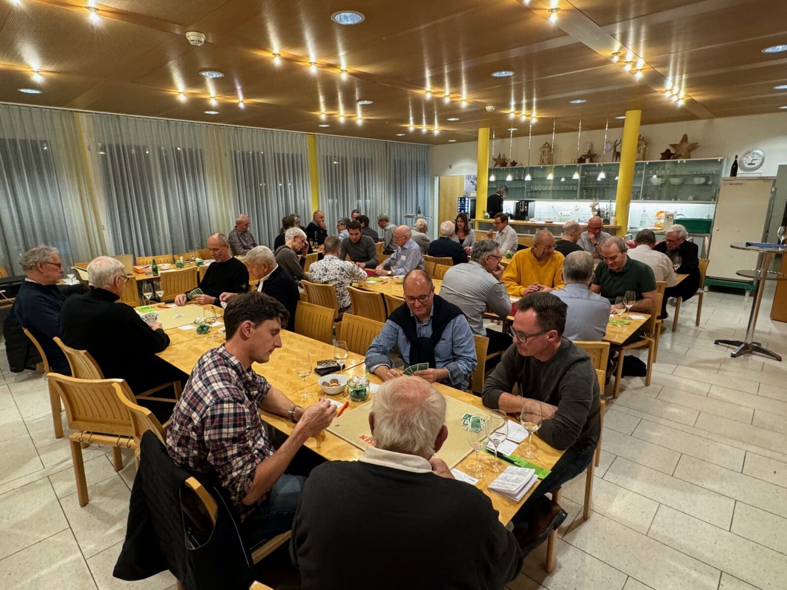 Am Samstagabend durften 32 Jasser am 73. Dreikönigsjass in den Räumen des HPV (mit exzellenter Bewirtung) teilnehmen. Es war ein spannender und fröhlicher Abend, an dem auch einige Neumitglieder aufgenommen wurden. Und es wurde ein neuer Jasskönig erkoren: Markus Hundsbichler! Der FC RG 17-Präsident holte sich mit 4075 Punkten den Titel, gefolgt von Edi Schökle mit 4021 Punkten. Auf Rang 3 und somit wieder auf dem Podest (letztes Jahr 2.) klassierte sich Hans Heule. Die ganze Rangliste findet man ganz unten. Hier nun einige Schnappschüsse vom 73. Dreikönigsjass. Die 74. Durchführung findet dann am 6. Januar 2025 statt. Das Beitragsbild wie auch die Rangliste ist von Thomas Leuenberger. Herzlichen Dank.