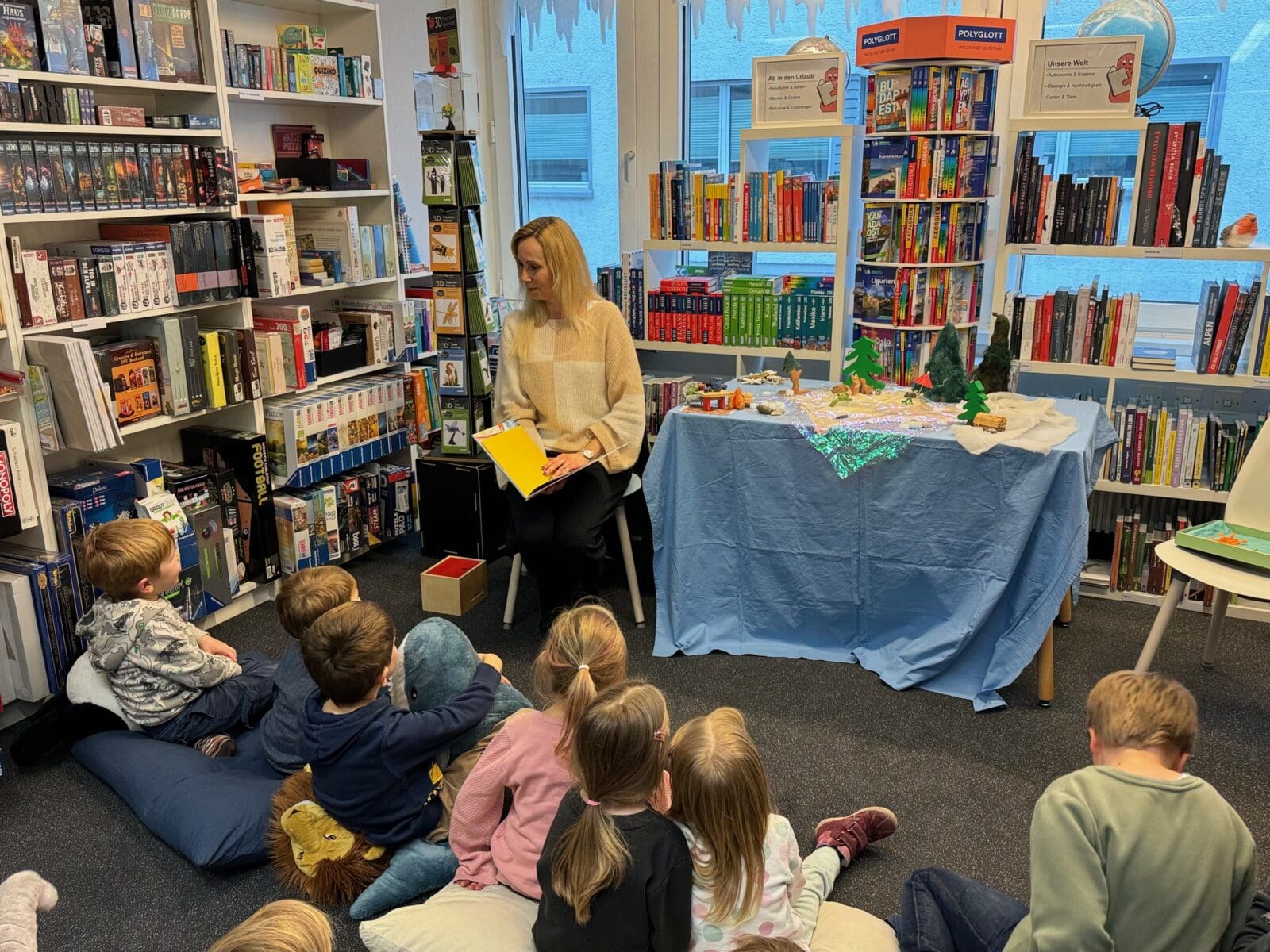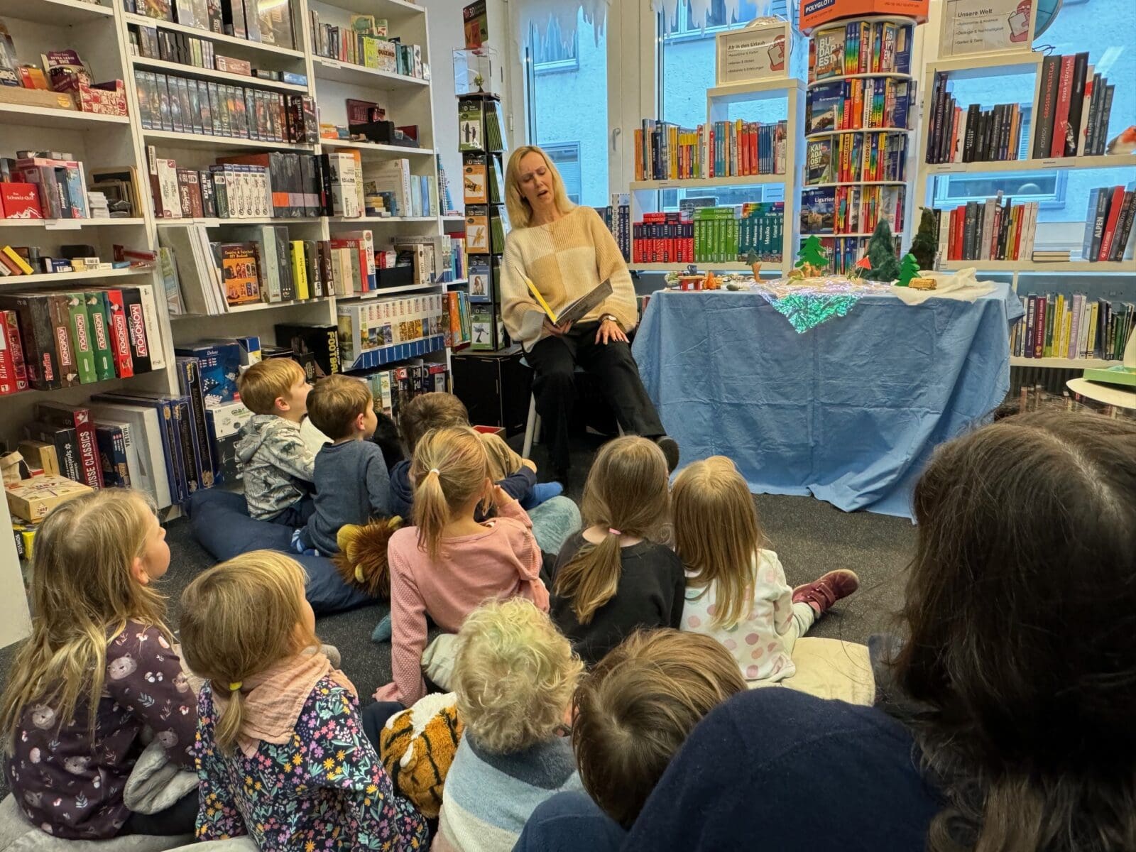 Wie einfach es ist, Kinder in den Bann zu ziehen, wurde gestern wieder deutlich, als Katja Baumann zur Vorlesestunde in die Buchhandlung WörterSpiel eingeladen hat. Und die Kids kamen, hingen ihr sozusagen an den Lippen und genossen sichtlich das, was sie zu hören bekamen. Das Analoge hat eben immer noch seinen Reiz. Gut so! Next time: Mittwoch, 28. Februar 2024.