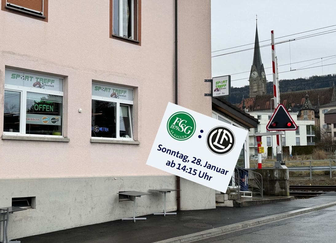 Die Partie zwischen dem FC SG und dem FC Lugano wird um 14:15 Uhr angepfiffen. Spätestens ab dann laufen bei Nermin in seinem SportTreff auch die Fernseher…