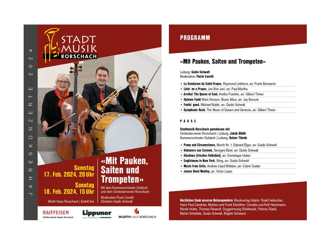Kommenden Samstag (20 Uhr) und Sonntag (15 Uhr) im Würth Haus Rorschach. Mehr zur Stadtmusik Rorschach finden Interessierte auch hier.