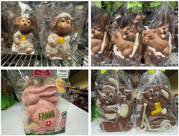 Das Rorschacher Echo hat sich in den beiden Grossverteilern Migros und Coop in Rorschach umgesehen und – mit Erlaubnis – fotografisch festgehalten, was sich neben „Hasen“ sonst noch in ein üppiges Osternest aufdrängt… Bei allen gefundenen Variationen bleibt eine Erkenntnis konstant: Die Basis bleibt Schoggi…