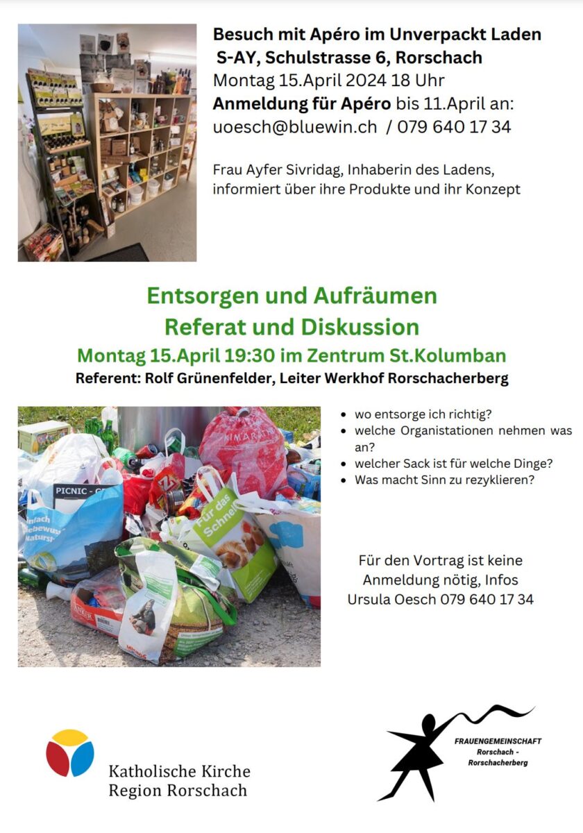 Beide Events finden in einer Woche statt. Für den Apéro im Rorschacher Unverpackt-Laden muss man sich bis kommenden Donnerstag anmelden.