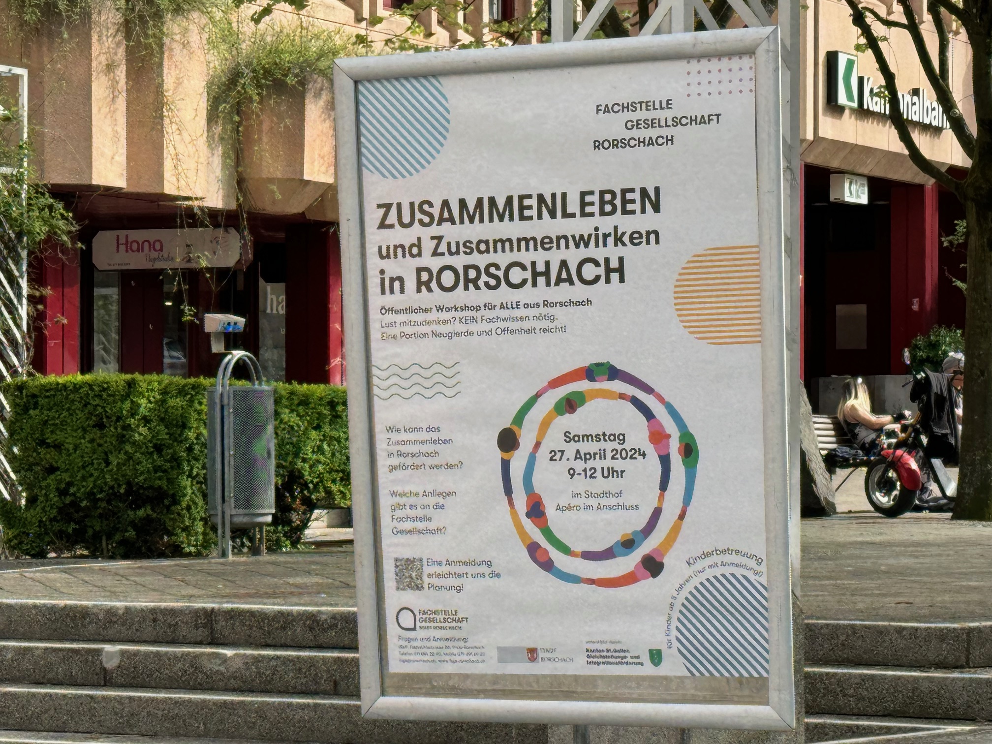 Im Strassenbild der Stadt nicht mehr zu übersehenThemen:Fachstelle GesellschaftKulturRorschach 11. April 2024 - 05:15Für den öffentlichen Workshop „Zusammenleben und Zusammenwirken in Rorschach“ am Samstag, 27. April 2024, sind die Plakate im Strassenbild nicht zu übersehen. Mehr Infos dazu findet man auf den Plakaten. Teilen mit: Einen Link per E-Mail an einen Freund senden (Wird in neuem Fenster geöffnet) E-Mail Drucken (Wird in neuem Fenster geöffnet) Drucken Auf Facebook teilen (Wird in neuem Fenster geöffnet) Facebook Auf X teilen (Wird in neuem Fenster geöffnet) X Auf WhatsApp teilen (Wird in neuem Fenster geöffnet) WhatsApp Gefällt mir:Gefällt mir Wird geladen …Newsletter abonnieren Bitte dieses Feld leer lassenBitte wähle, ob Du über jeden neuen Beitrag sofort oder lieber jeden Morgen gegen 9 Uhr eine Zusammenfassung der neusten Beiträge erhalten möchtest.Liste(n) auswählen: Neues vom Echo (Zusammenfassung) Neues vom Echo (Sofortbenachrichtigung) Dieses Feld wird benötigt.Prüfen Sie Ihren Posteingang und den Spamordner, um Ihr Abonnement zu bestätigen.