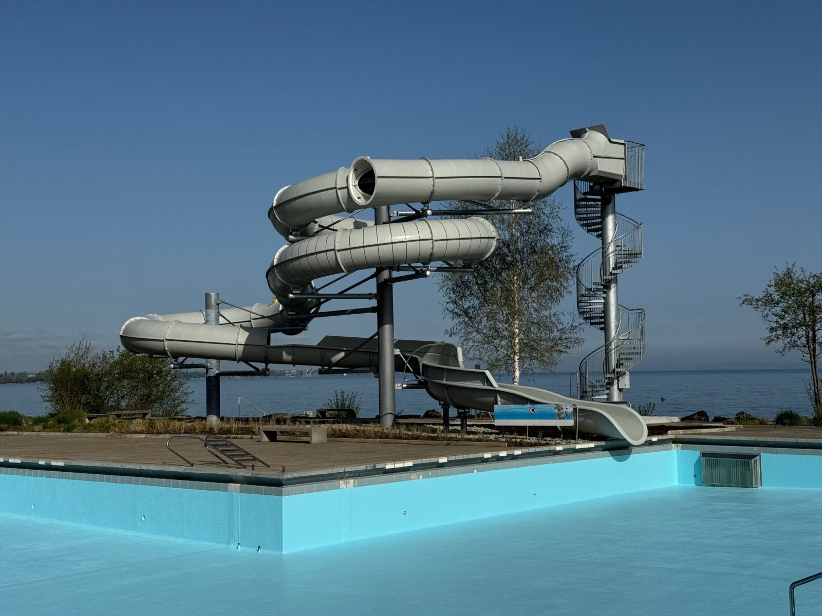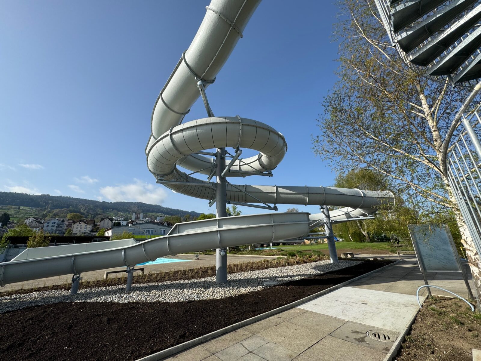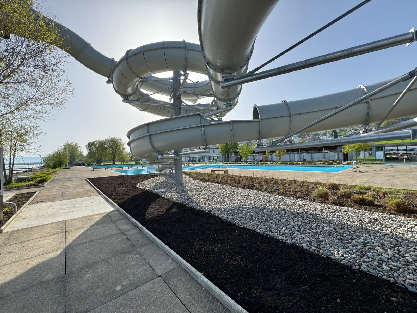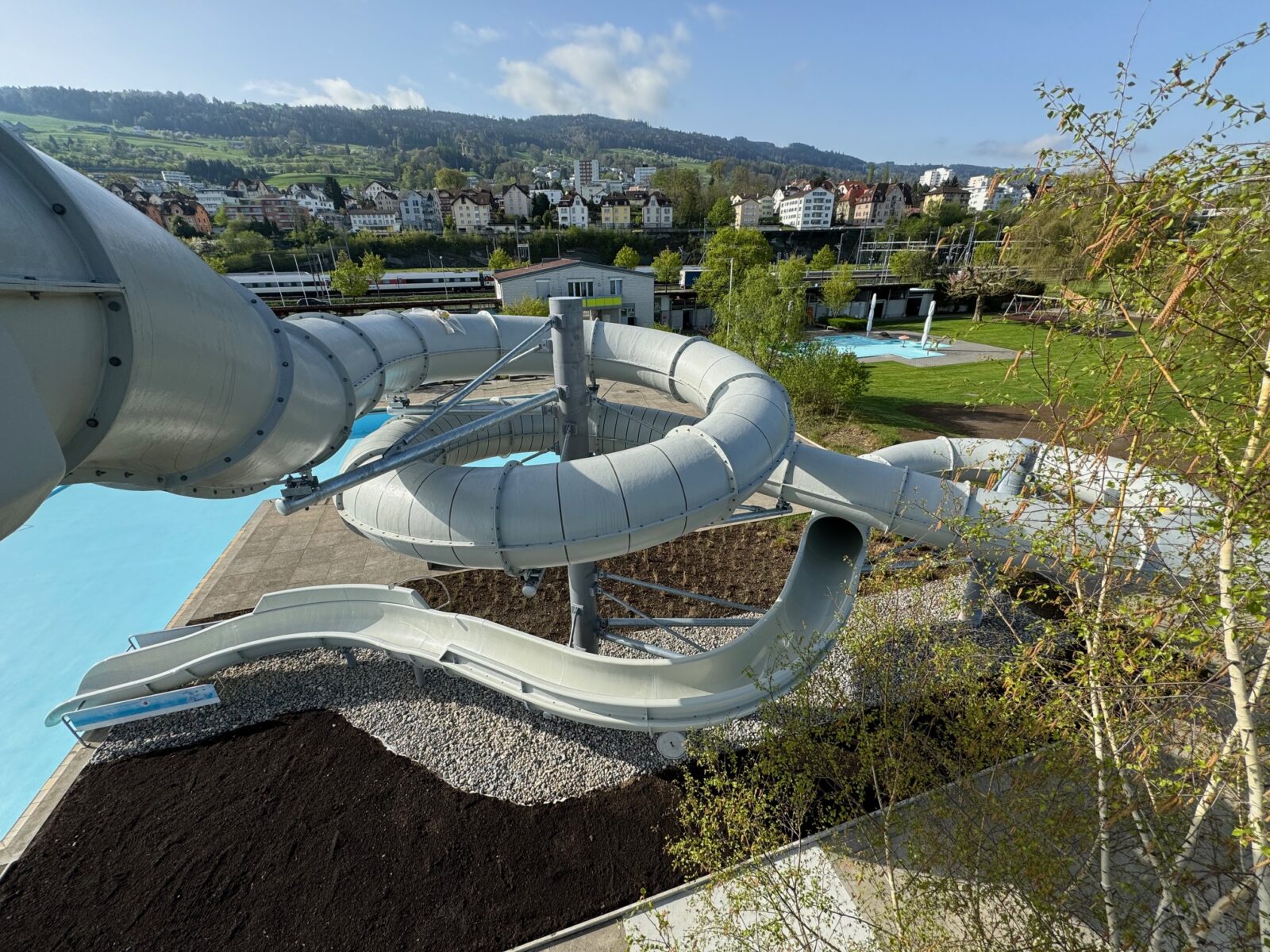 „Mit dem Budget 2023 genehmigte die Bürgerversammlung einen Kredit von 500’000 Franken für den Ersatz der Wasserrutschbahn. Die Bauarbeiten konnten fristgerecht abgeschlossen werden, sodass die Anlage pünktlich auf Saisonbeginn am 11. Mai 2024 den Betrieb aufnehmen kann.