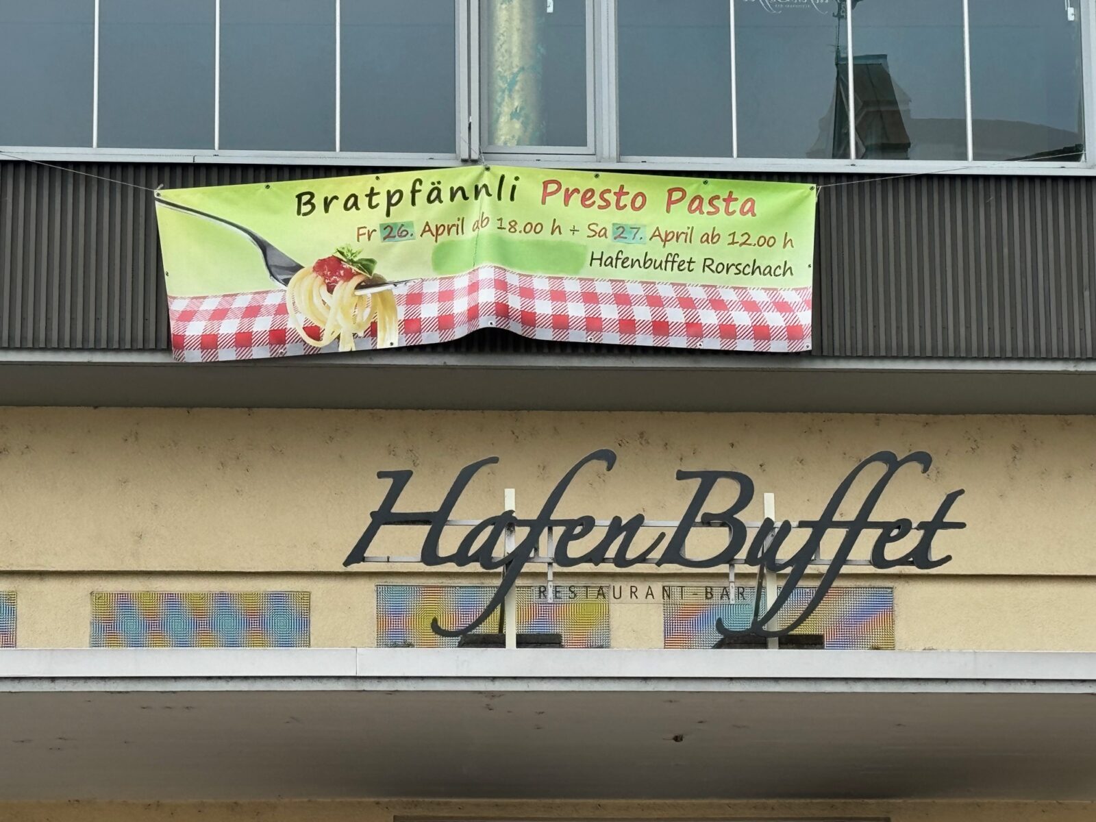 Das Bratpfännli-Team und die HafenBuffet-Crew freuen sich auf viel Besuch. Presto Pasta gibt es morgen Freitag, 26.04.24 ab 18.00 Uhr und am Samstag, 27.04.24 ab 12.00 Uhr.