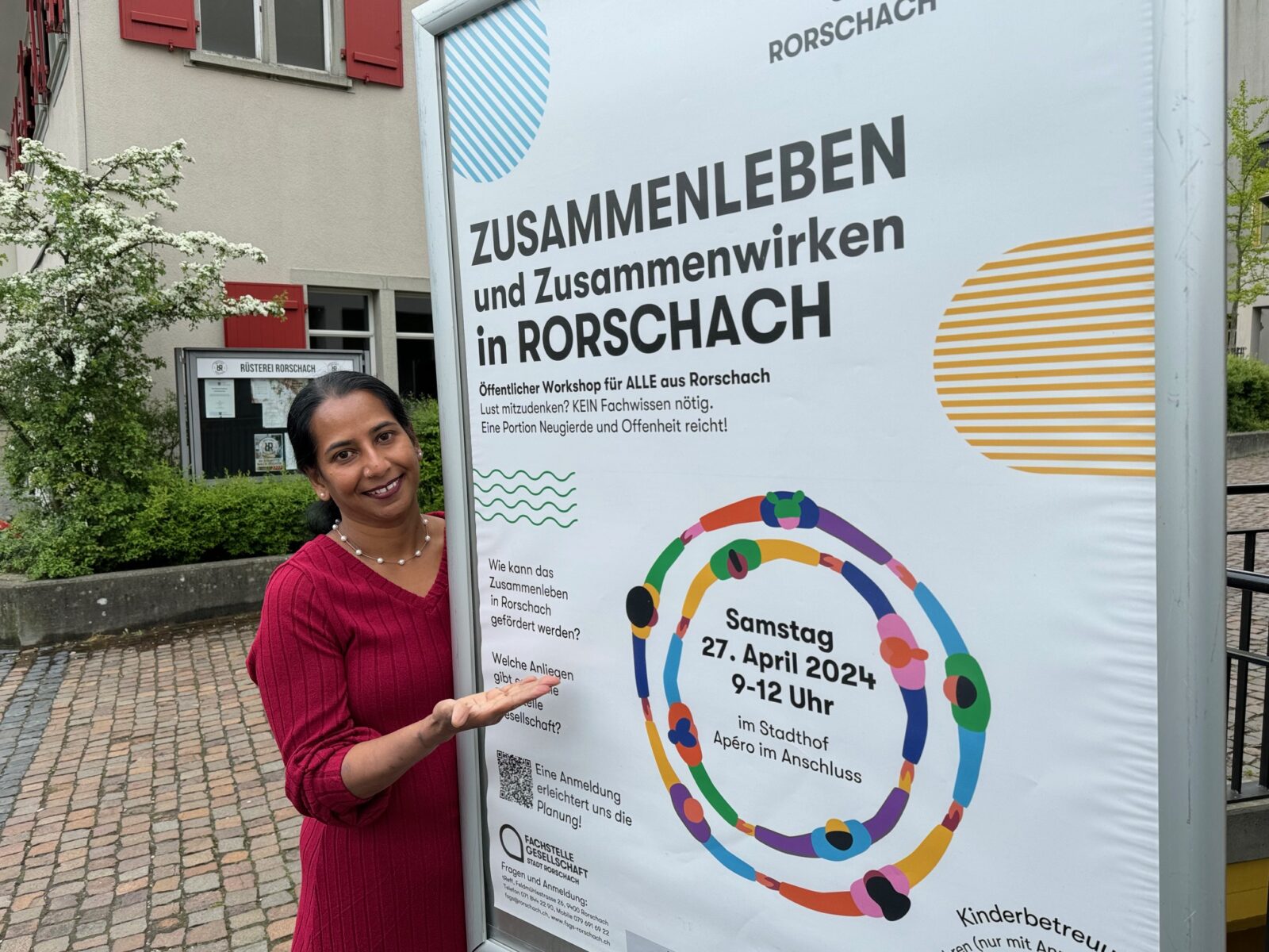 Sarah Soosaipialli wird ebenfalls am Workshop „Zusammenleben und Zusammenwirken in Rorschach“ übermorgen Samstag im Stadthofsaal teilnehmen und ihre persönlichen Erfahrungen einbringen. Für eine bessere Koordination dieses öffentlichen Workshops würden es die Initiant:innen schätzen, wenn man sich kurz anmelden könnte. Mehr Infos dazu findet man auch hier.