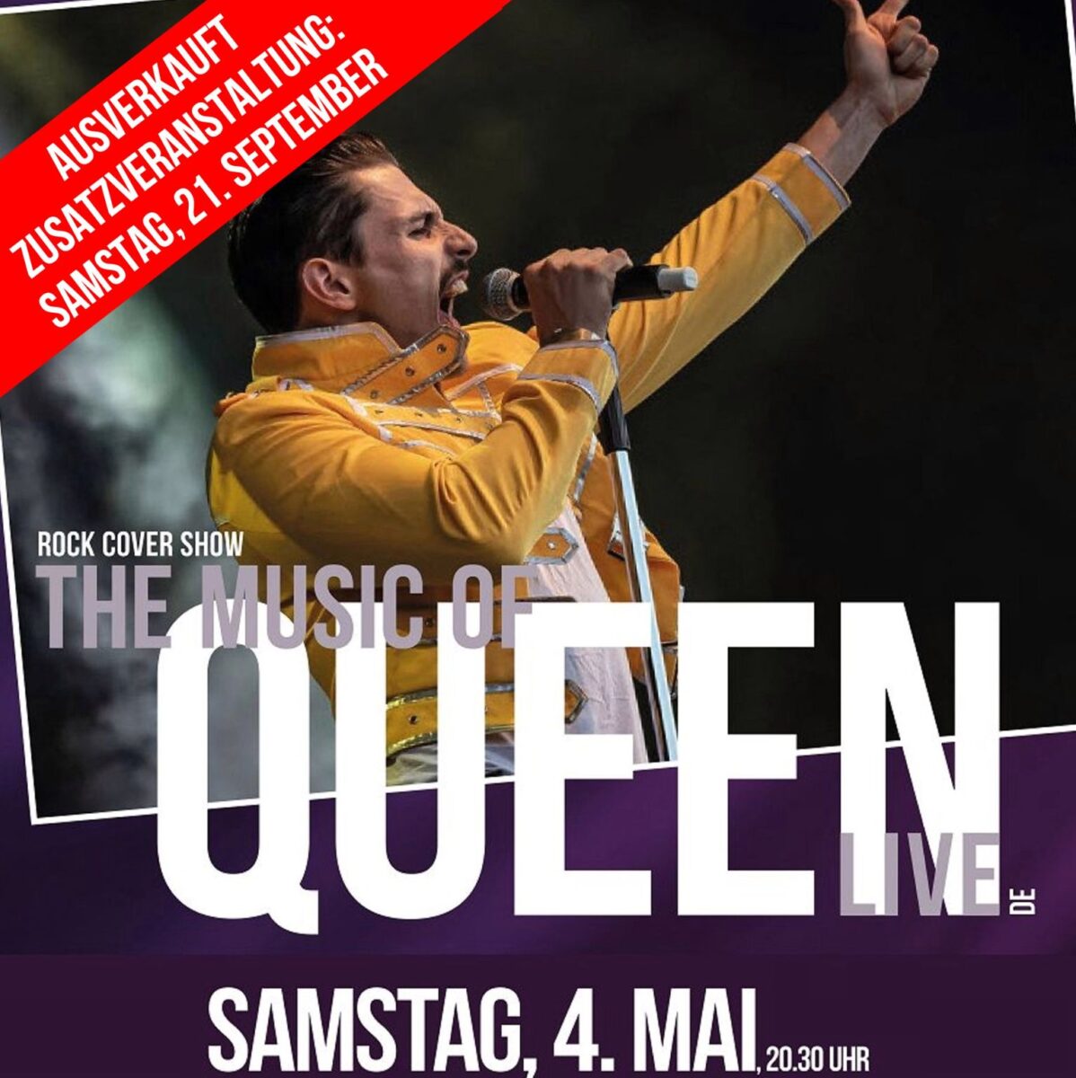 ROCK COVER SHOW / Nach der überzeugenden, ausverkauften Show im November 2023 wird die grossartige Musik der britischen Kultband QUEEN erneut von der erstklassigen Liveband «The Music of Queen – Live» um den charismatischen Frontmann Valentin L. Findling, der Freddie Mercury so atemberaubend und authentisch verkörpert wie kein Zweiter, präsentiert. Seine Stimme, Look und Moves versetzen das Publikum für zurück in die «gute alte» Zeit. Das Konzert am kommenden Samstag ist ebenfalls bereits ausverkauft (unten sieht man, wie man an die letzten Tickets kommt!!). Eine weitere Zusatzshow findet am 21. September 2024 statt.