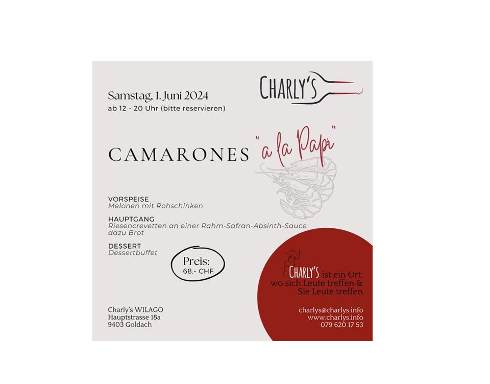 Das findet kommenden Samstag ab 12 Uhr an der Hauptstrasse 18a in Goldach statt. Mehr zu „Charly’s“ findet man hier. Reservation wird empfohlen.