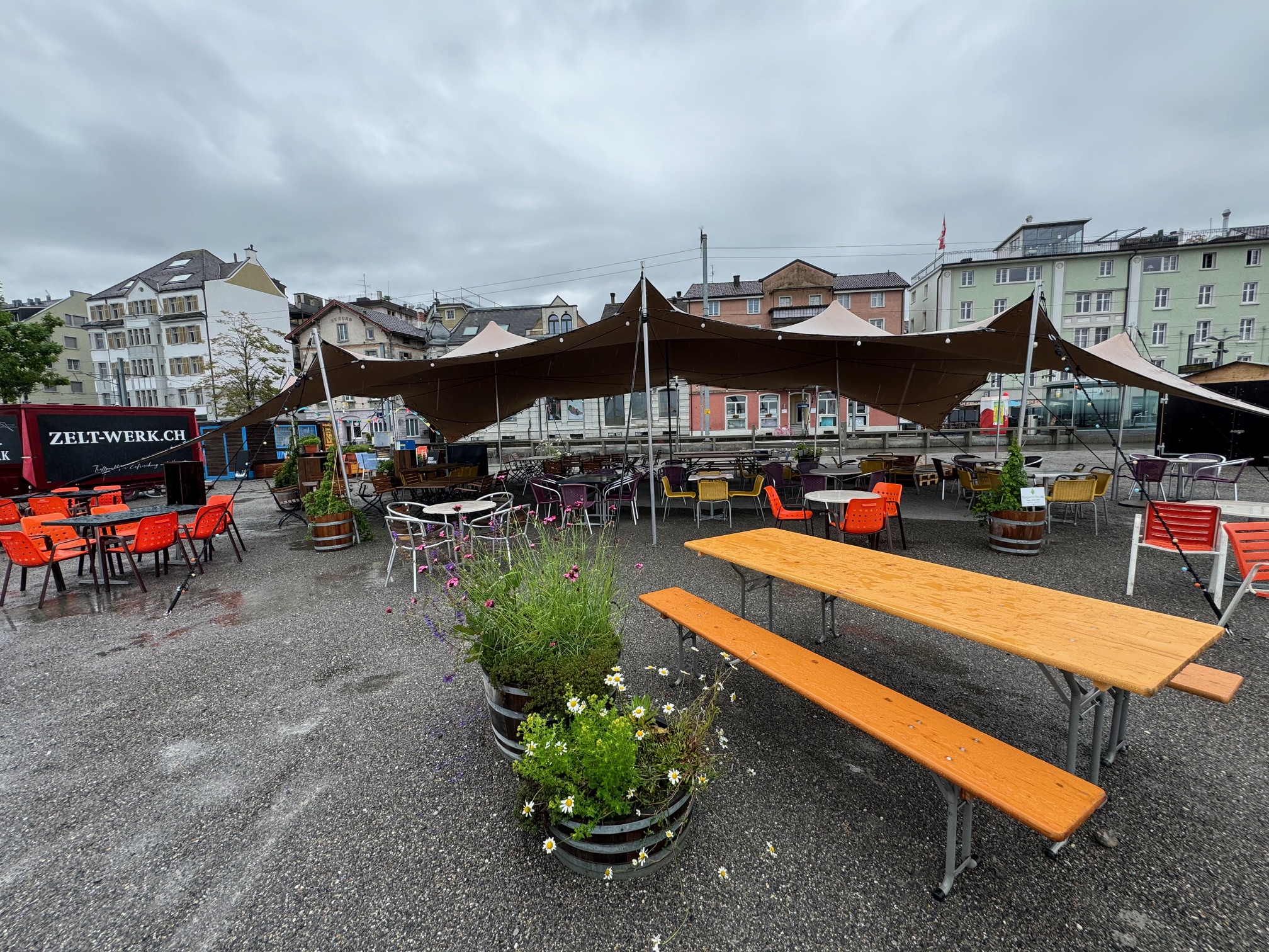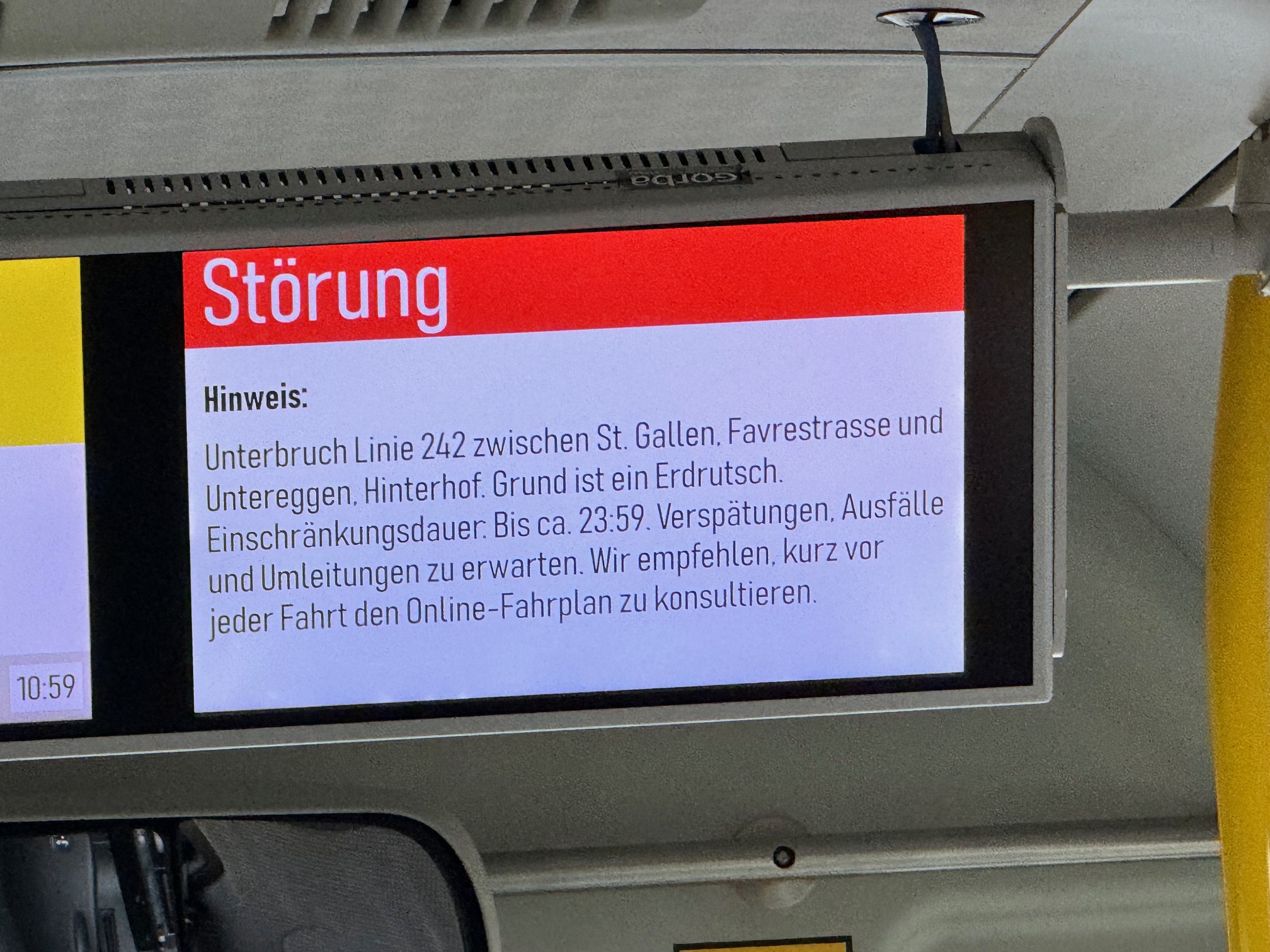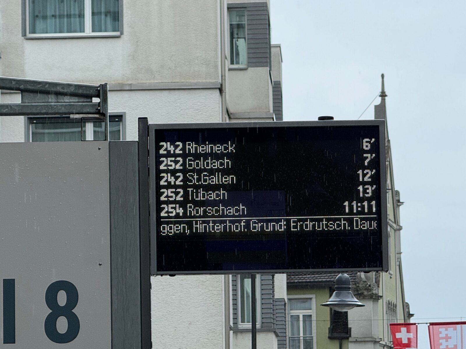 Das missliche Wetter sorgt auch dafür, dass das Zelt-Werk heute geschlossen bleibt und die Postautolinie 242 wegen einem Erdrutsch in Untereggen nicht nach St.Gallen fahren kann.