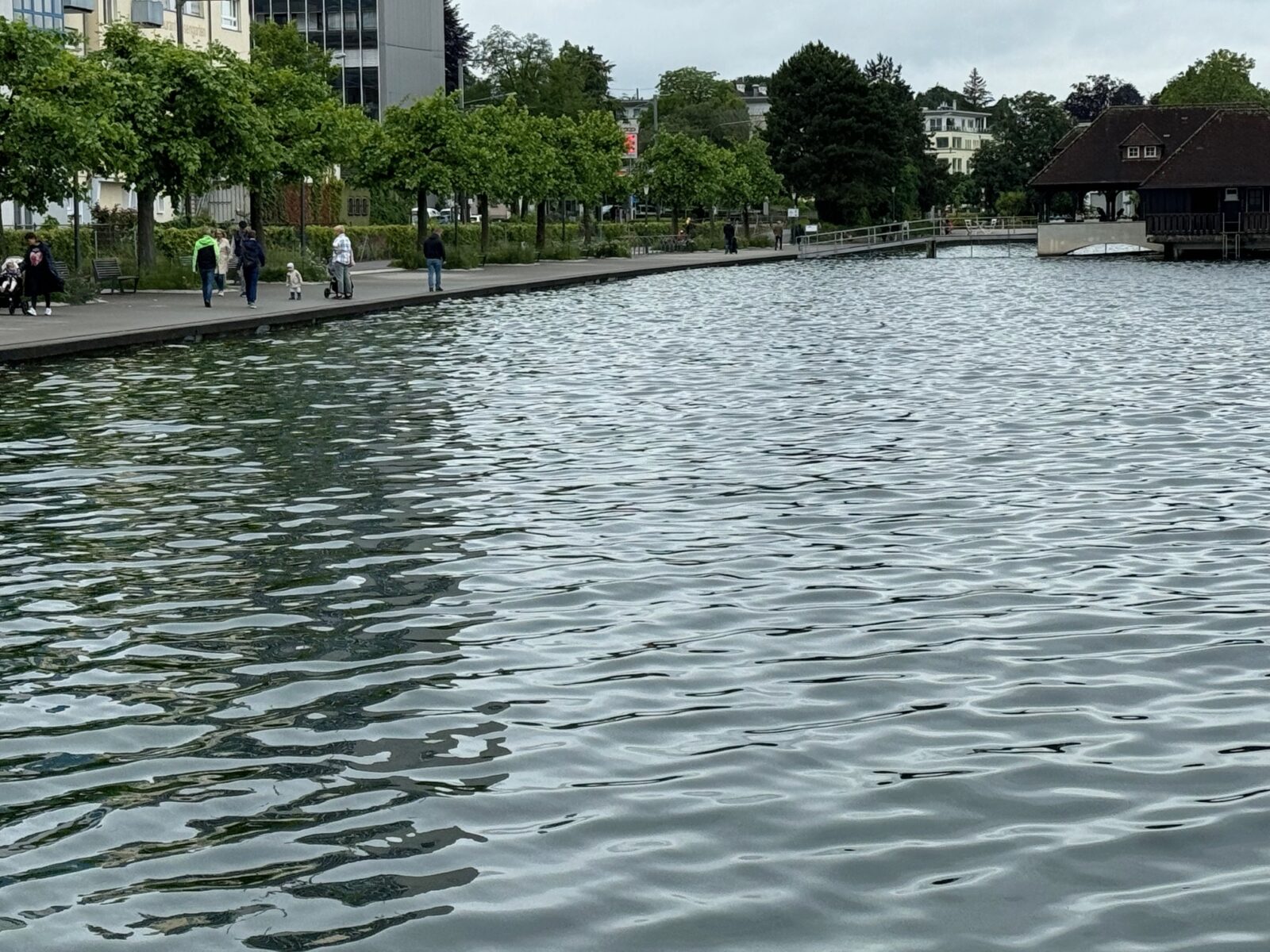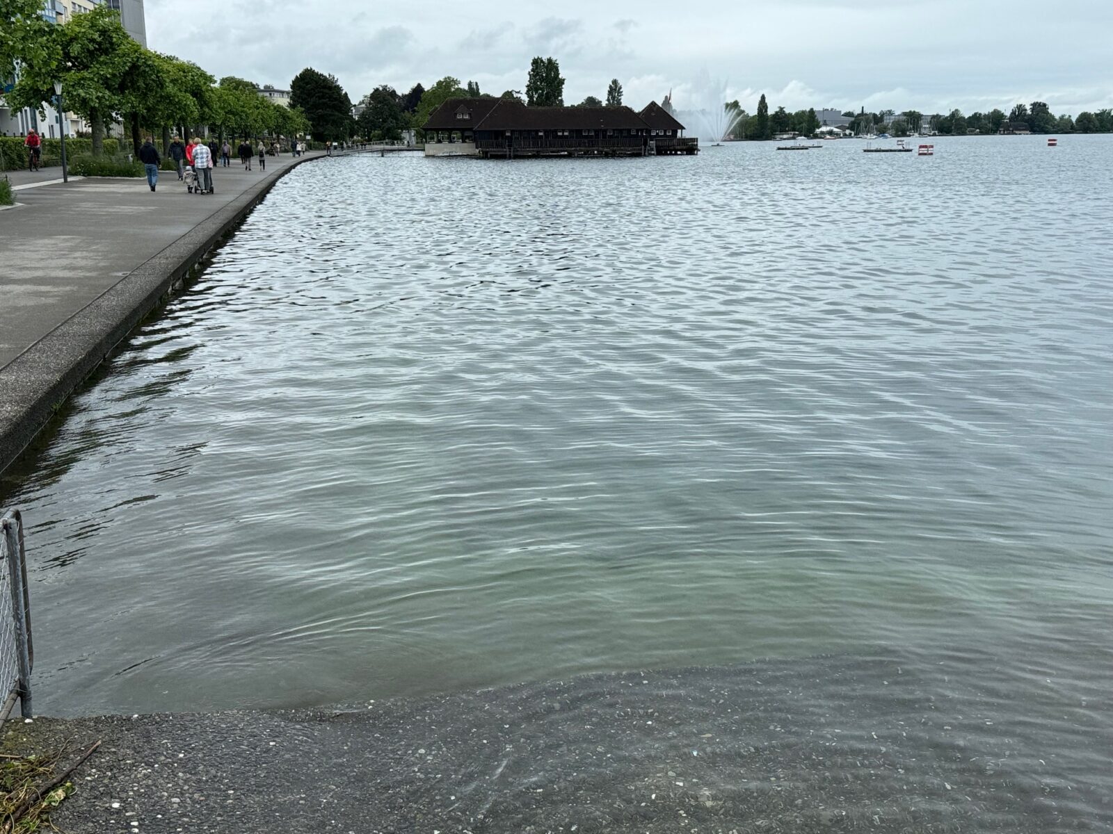 Heute kurz vor dem Mittag fotografiert. So ein fast voller See hat auch seinen Reiz.