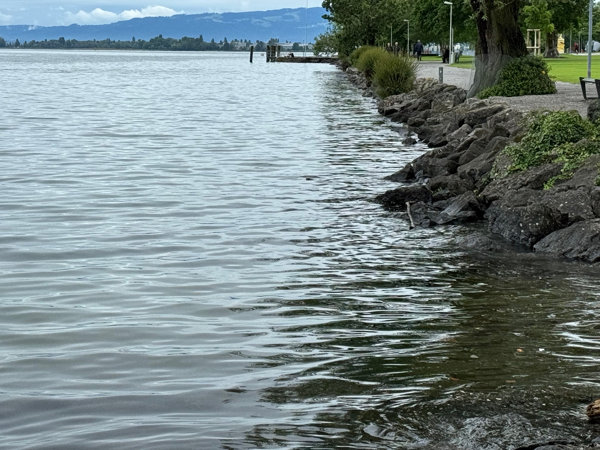 Heute kurz vor dem Mittag fotografiert. So ein fast voller See hat auch seinen Reiz.
