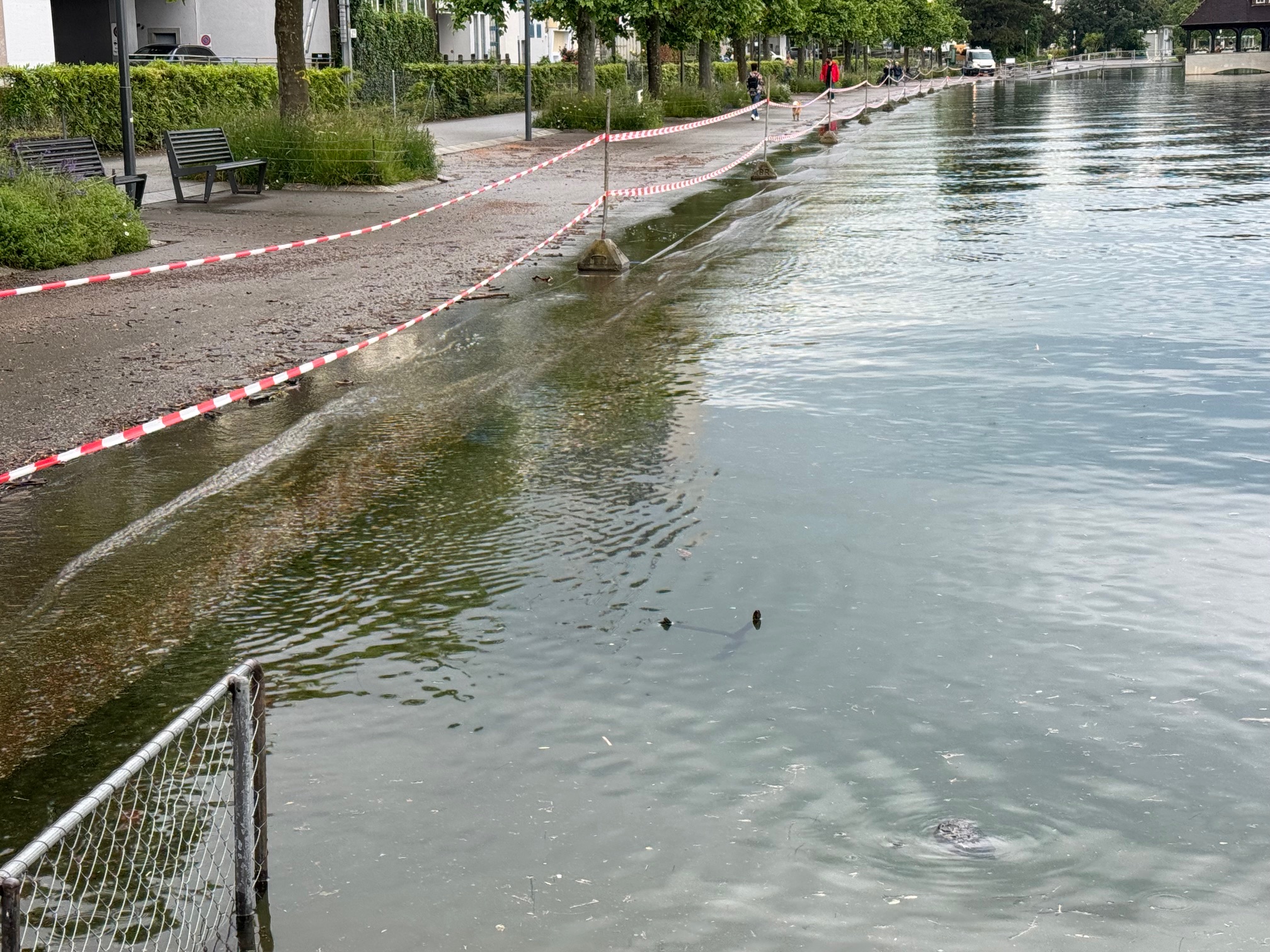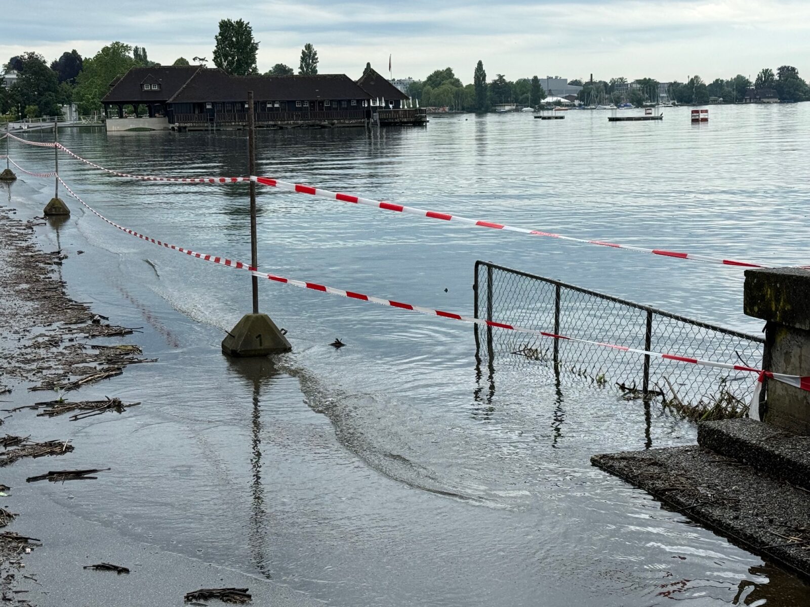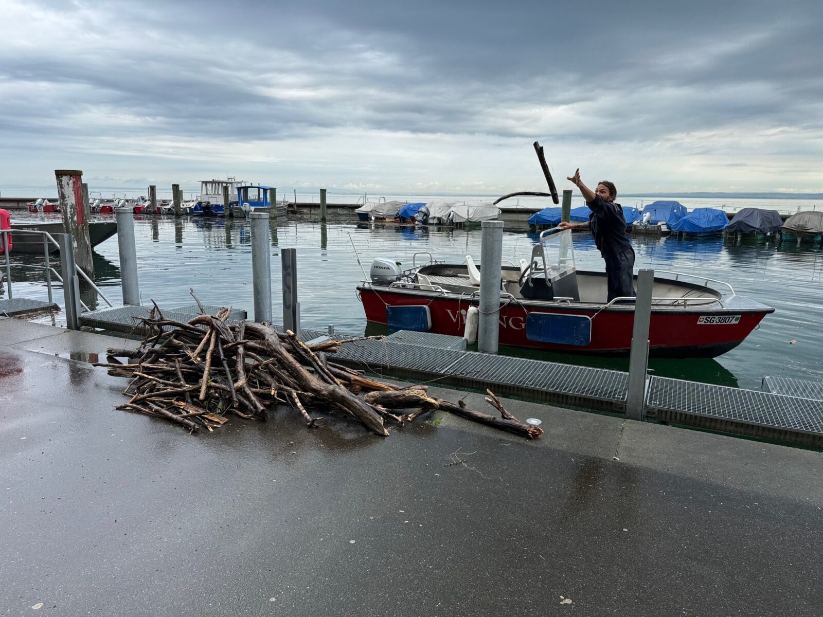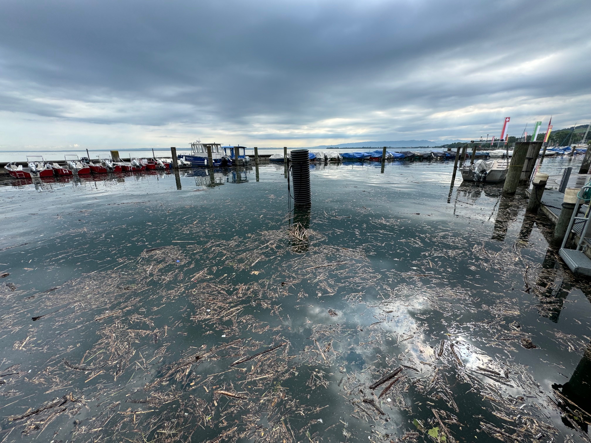 Kurz vor Mittag meldet die Messstation heute einen gleichbleibend hohen Seepegel von 397.14 Meter über Meer (MüM). Und die Wetterprognosen sagen weitere Niederschläge voraus. Man muss das Ganze weiterhin im Auge behalten. Zudem ist heute viel Schwemmholz im Rorschacher Hafen auszumachen. Ein Mitarbeiter versucht, das Ganze in einem erträglichen Mass zu halten. Hier Bilder von heute Freitagvormittag.