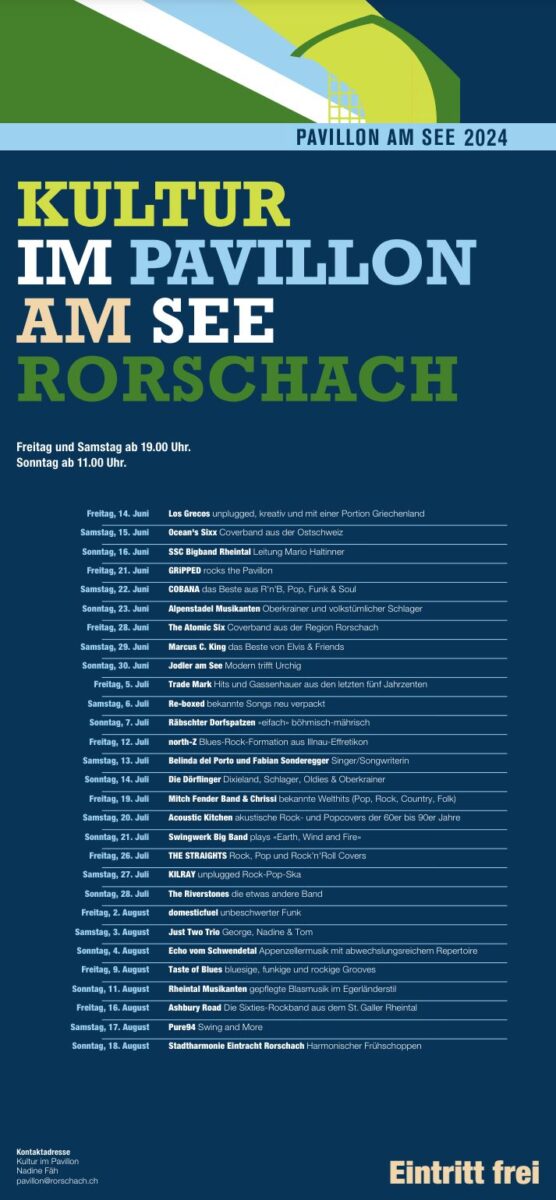 Die beliebten Konzerte der Sommereventreihe „Kultur im Pavillon am See in Rorschach“ starten kommenden Freitag, 14. Juni 2024. „Los Grecos“ geben sich die Ehre. Damit ist eigentlich schon fast alles gesagt und vielen wird das letztjährige Konzert anlässlich der Strandfestwochen noch in allerbester Erinnerung sein.