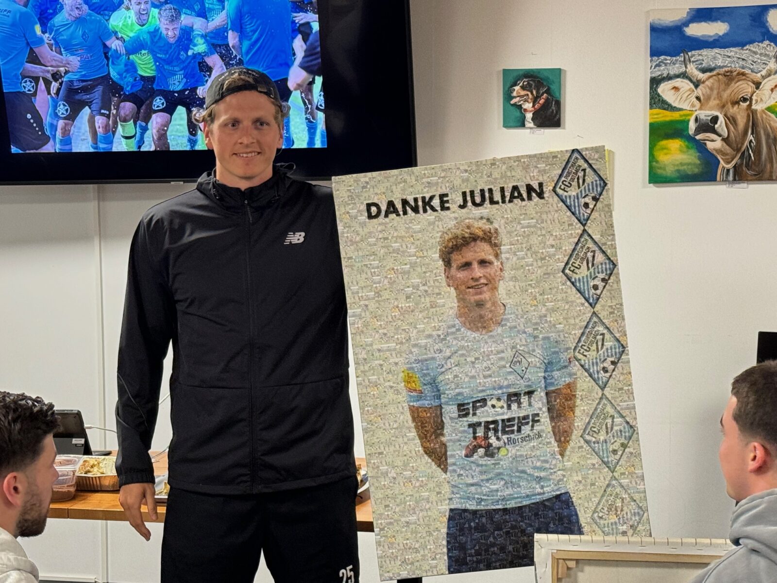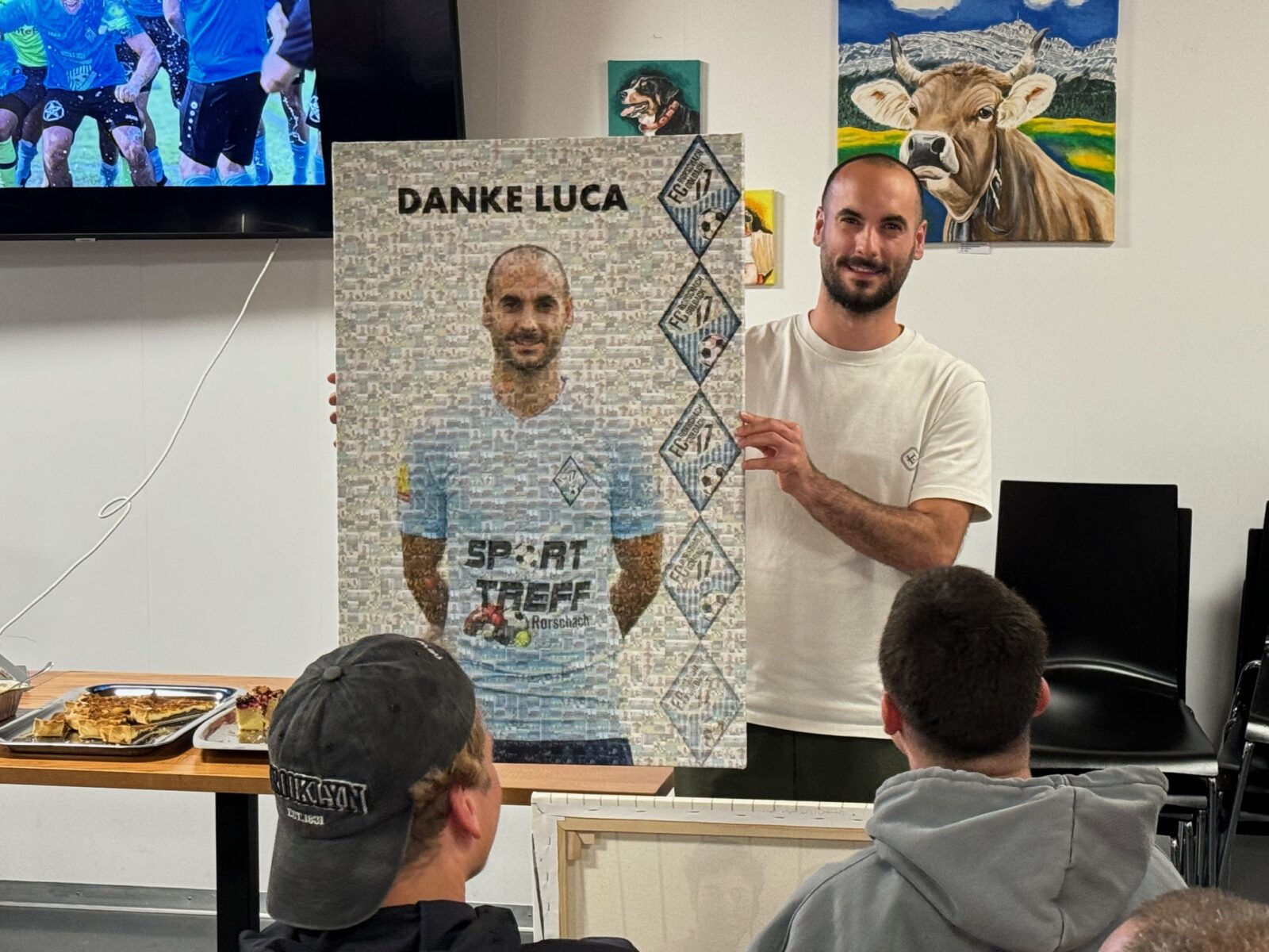 Heute Nachmittag hat der FC Rorschach-Goldach 17 mit dem Auswärtsspiel beim Aufsteiger FC Altstätten die Saison 2023/24 offiziell beendet. Die Partie endete 3:3 (Tore für den FCRG17 durch Adi Morina (2) und Latif Canoski). Somit gelang es Aufsteiger Altstätten nicht, den FC Rorschach-Goldach 17 in dieser Saison zu bezwingen. Bereits am Donnerstagabend hatte Captain Patrice Baumann drei langjährige Fussballcracks verabschiedet. Es sind dies Torwart und Cup-Goalie Rico Dürlewanger und die beiden Defensivspieler Luca di Benedetto und Julian Haag. Rico zieht nach Bern, um dort sein Studium zu beginnen, Luca und Julian bleiben dem Verein treu und übernehmen Aufgaben in der zweiten Mannschaft. Hier einige Impressionen von dieser Verabschiedung der speziellen Art: