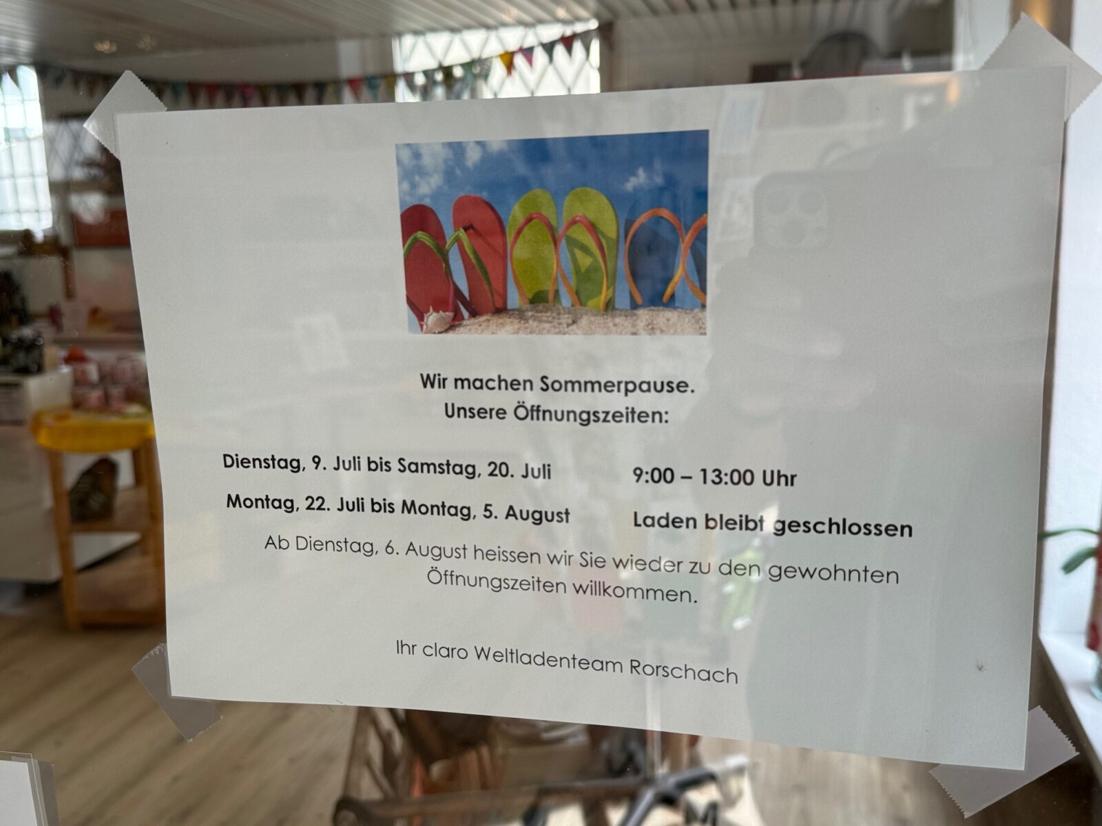 Der claro-Weltladen hat ab nächster Woche FerienThemen:KulturRorschach 16. Juli 2024 - 05:25Wer also noch was braucht kann das noch vormittags einkaufen…Teilen mit: Einen Link per E-Mail an einen Freund senden (Wird in neuem Fenster geöffnet) E-Mail Drucken (Wird in neuem Fenster geöffnet) Drucken Auf Facebook teilen (Wird in neuem Fenster geöffnet) Facebook Auf X teilen (Wird in neuem Fenster geöffnet) X Auf WhatsApp teilen (Wird in neuem Fenster geöffnet) WhatsApp Gefällt mir:Gefällt mir Wird geladen …Newsletter abonnieren Bitte dieses Feld leer lassenBitte wähle, ob Du über jeden neuen Beitrag sofort oder lieber jeden Morgen gegen 9 Uhr eine Zusammenfassung der neusten Beiträge erhalten möchtest.Liste(n) auswählen: Neues vom Echo (Zusammenfassung) Neues vom Echo (Sofortbenachrichtigung) Dieses Feld wird benötigt.Prüfen Sie Ihren Posteingang und den Spamordner, um Ihr Abonnement zu bestätigen.