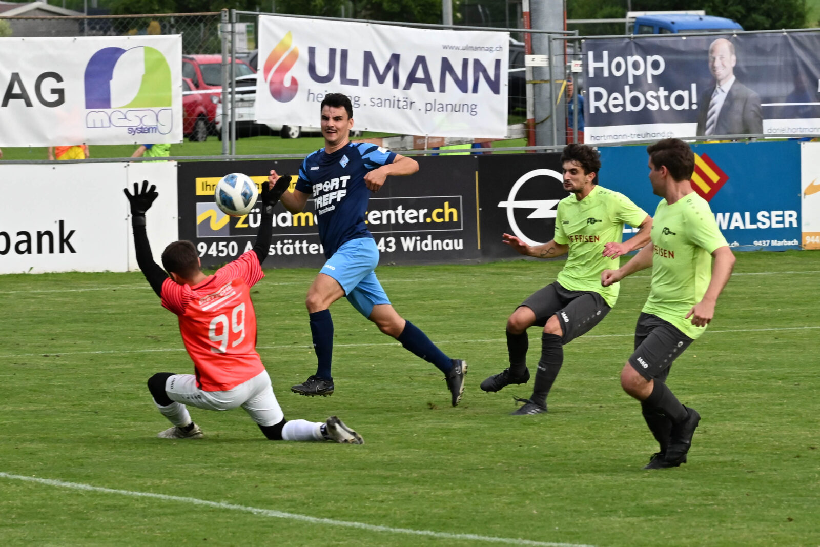 Heute Abend entscheidet sich spätestens um 21 Uhr, wie sich das Team um Marc Blumer am diesjährigen Pokalturnier beim FC Rebstein in der Vorrunde klassiert. Nach den beiden Startsiegen grüsst der FCRG17 von der Tabellenspitze. Er wird sich aller Voraussicht nach mit dem FC Altstätten um den Gruppensieg duellieren. Die hier gezeigten Bilder stammen allesamt von Hansueli Steiger, fotografiert am Mittwochabend.