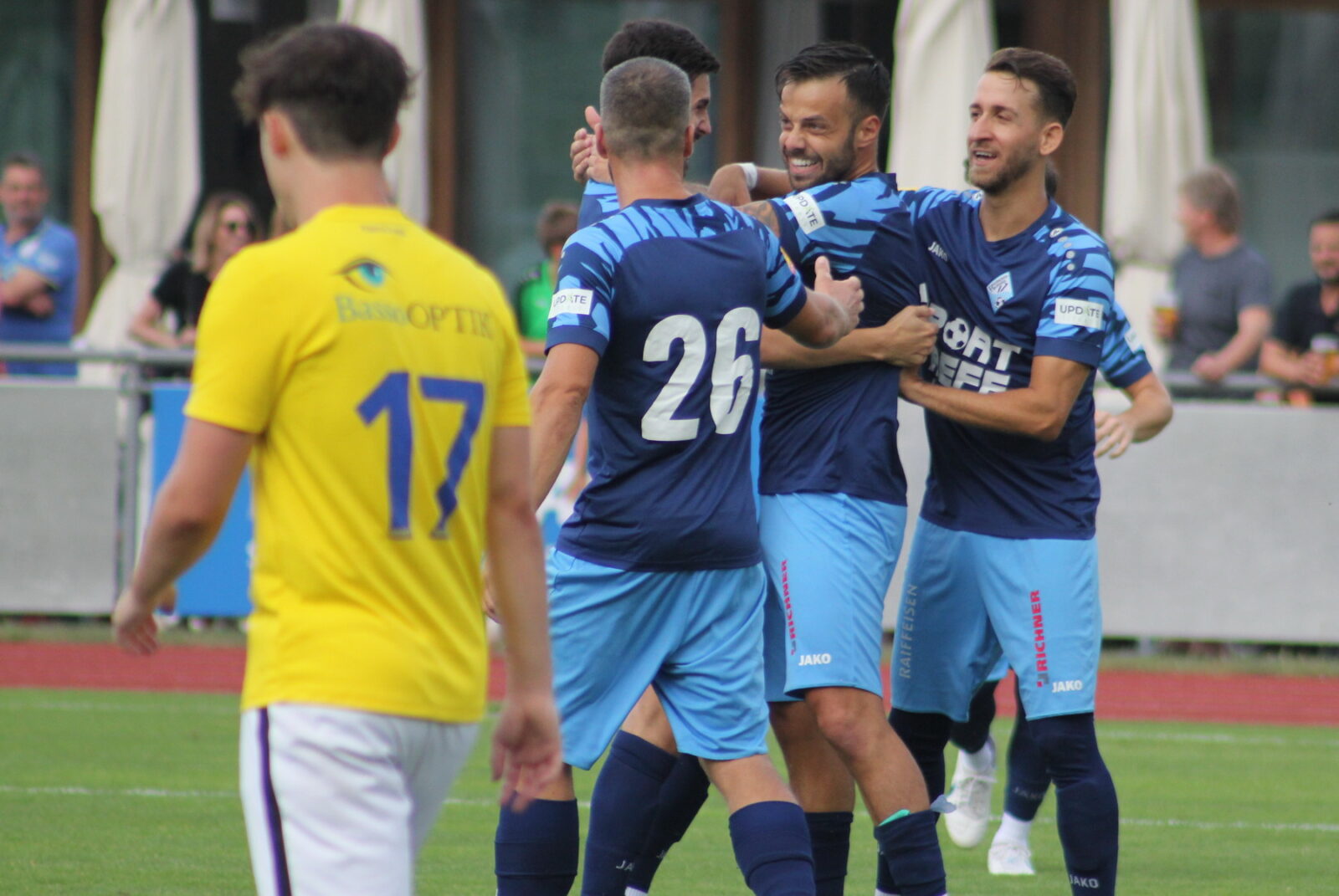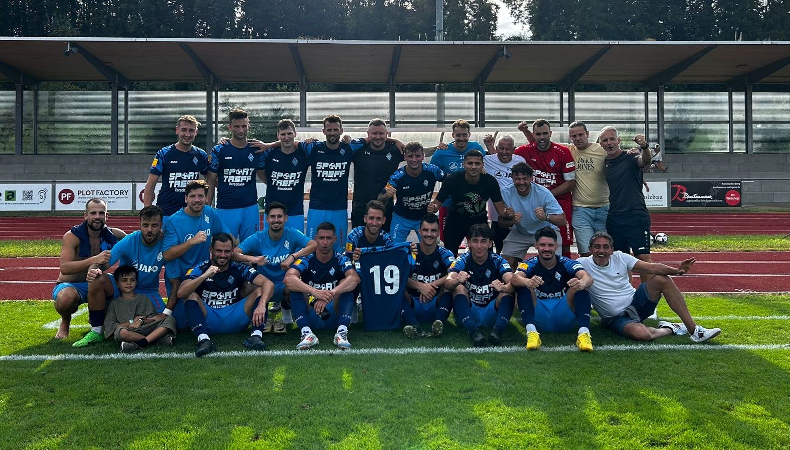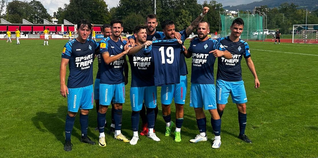 Das Team von Trainer Marc Blumer liess gestern auf Kellen nichts anbrennen und fertigte den FC Au-Berneck 05 gleich mit 6:0 (3:0) ab. Nach einem Eigentor zum 1:0 waren es dann Patrice Baumann, Adrian Morina, Severin Schwendener, Oli Baumann und Matej Potokar, die diesen schönen Startsieg sicherstellten. Nebst dem klaren Erfolg ist aber auch die Geste gegenüber dem erneut schwer verletzten Gilvan Wagner da Silva (das Beitragsbild zeigt das Team nach dem Schlusspfiff und dem Trikot von Gilvan) erwähnenswert.