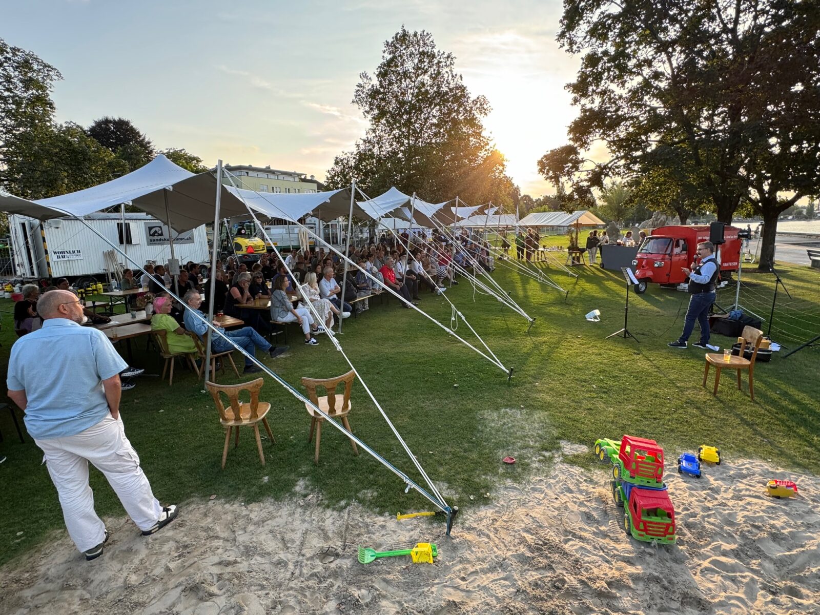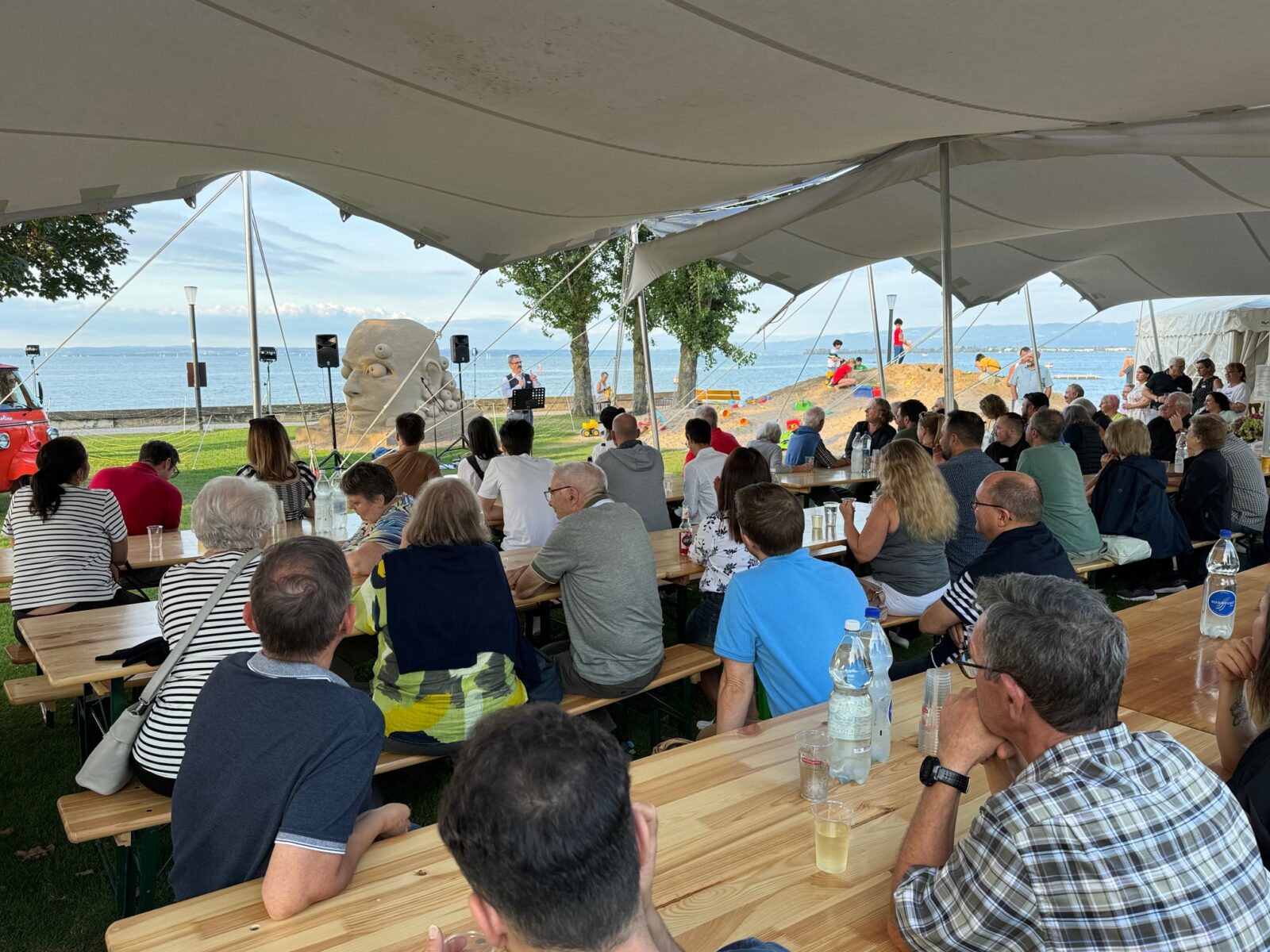 Gestern Abend bei den Sandskulpturen auf der Arionwiese: Stadtpräsident Röbi Raths hat rund 100 Neuzuzügerinnen und Neuzuzüger, die der städtischen Einladung nachgekommen sind, offiziell in Rorschach Willkommen geheissen. Hier einige Impressionen dieser schönen Tradition direkt am See.