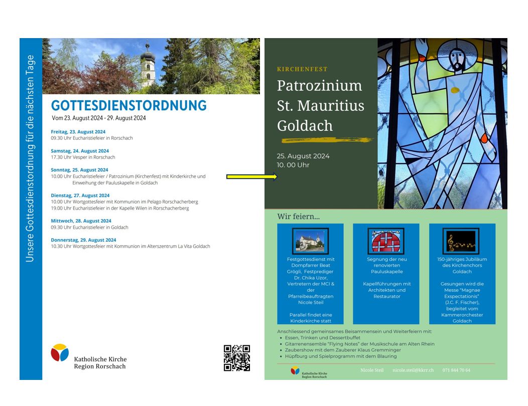 Gottesdienstordnung der KKRR für die nächsten TageThemen:Kath. RorschachKulturPartnerRegionRorschach 23. August 2024 - 05:20Gilt ab heute Freitag bis kommenden Donnerstag, 29. August 2024. Mehr Informationen finden Interessierte immer auch hier und hier. Teilen mit: Einen Link per E-Mail an einen Freund senden (Wird in neuem Fenster geöffnet) E-Mail Drucken (Wird in neuem Fenster geöffnet) Drucken Auf Facebook teilen (Wird in neuem Fenster geöffnet) Facebook Auf X teilen (Wird in neuem Fenster geöffnet) X Auf WhatsApp teilen (Wird in neuem Fenster geöffnet) WhatsApp Gefällt mir:Gefällt mir Wird geladen …Newsletter abonnieren Bitte dieses Feld leer lassenBitte wähle, ob Du über jeden neuen Beitrag sofort oder lieber jeden Morgen gegen 9 Uhr eine Zusammenfassung der neusten Beiträge erhalten möchtest.Liste(n) auswählen: Neues vom Echo (Zusammenfassung) Neues vom Echo (Sofortbenachrichtigung) Dieses Feld wird benötigt.Prüfen Sie Ihren Posteingang und den Spamordner, um Ihr Abonnement zu bestätigen.