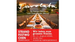 Fabian Devos und Vogelsanger Weine laden kommenden Sonntag zur grossen Tavolata an den Strandfestwochen Rorschach. Gemeinsam an einem grossen Tisch sitzen, essen, trinken und philosophieren. Die Initianten freuen sich auf…