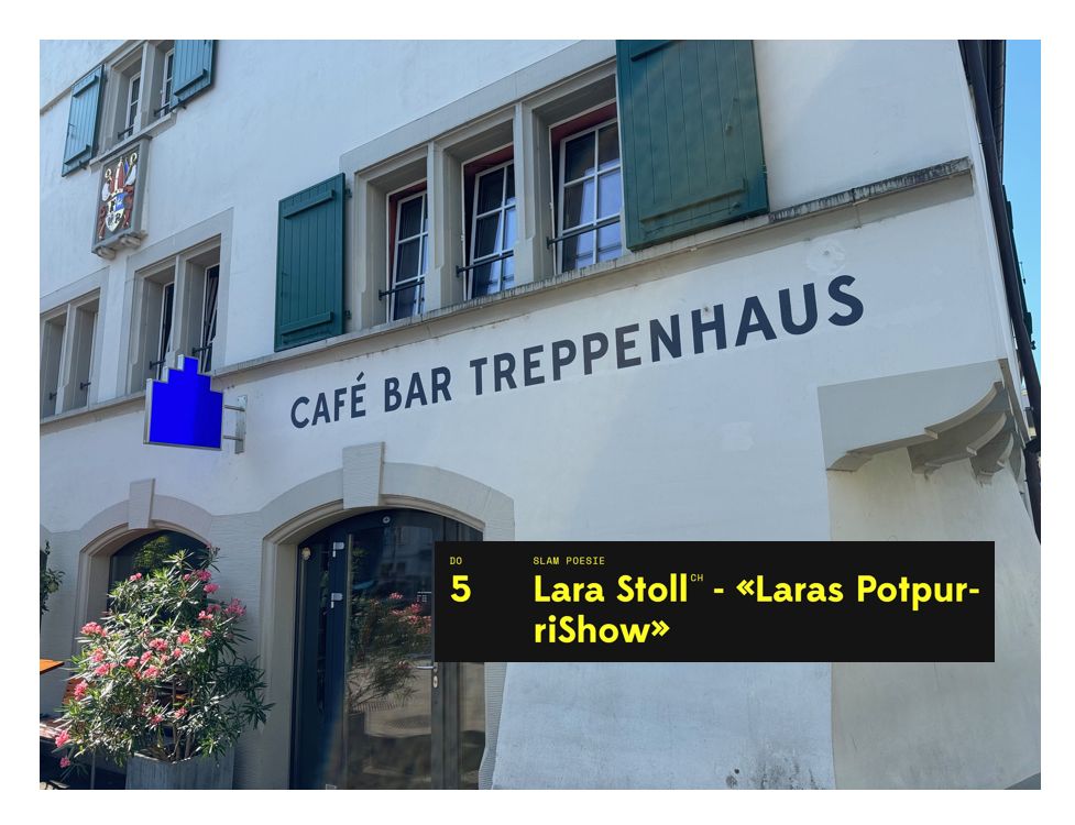 Lara Stoll am Donnerstag im Rorschacher TreppenhausThemen:BeizenKulturRorschachTreppenhaus 2. September 2024 - 05:05Mehr Infos zu diesem Event finden Interessierte hier. Plakat: pd thrTeilen mit: Einen Link per E-Mail an einen Freund senden (Wird in neuem Fenster geöffnet) E-Mail Drucken (Wird in neuem Fenster geöffnet) Drucken Auf Facebook teilen (Wird in neuem Fenster geöffnet) Facebook Auf X teilen (Wird in neuem Fenster geöffnet) X Auf WhatsApp teilen (Wird in neuem Fenster geöffnet) WhatsApp Gefällt mir:Gefällt mir Wird geladen …Newsletter abonnieren Bitte dieses Feld leer lassenBitte wähle, ob Du über jeden neuen Beitrag sofort oder lieber jeden Morgen gegen 9 Uhr eine Zusammenfassung der neusten Beiträge erhalten möchtest.Liste(n) auswählen: Neues vom Echo (Zusammenfassung) Neues vom Echo (Sofortbenachrichtigung) Dieses Feld wird benötigt.Prüfen Sie Ihren Posteingang und den Spamordner, um Ihr Abonnement zu bestätigen.