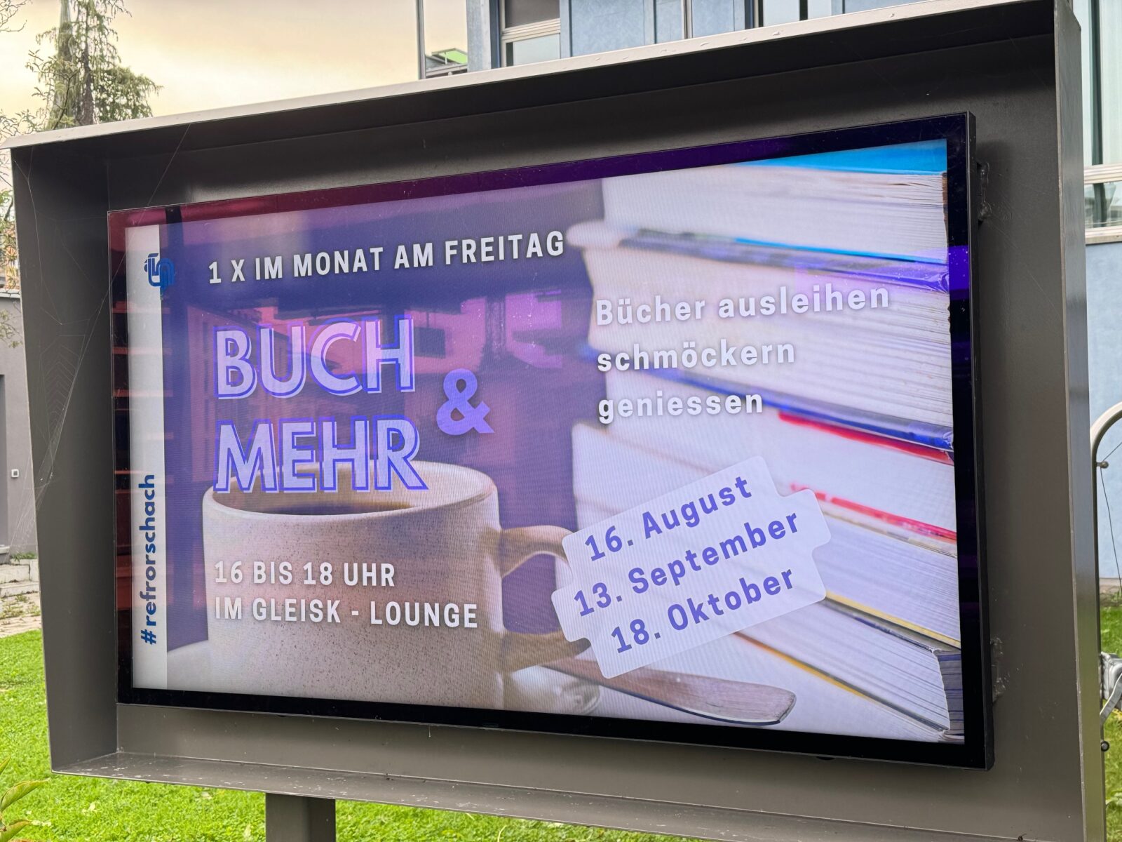 1x im Monat am Freitag von 16 – 18 Uhr im GleisK: Bücher ausleihen, schmöckern, geniessen… Next time wäre morgen…