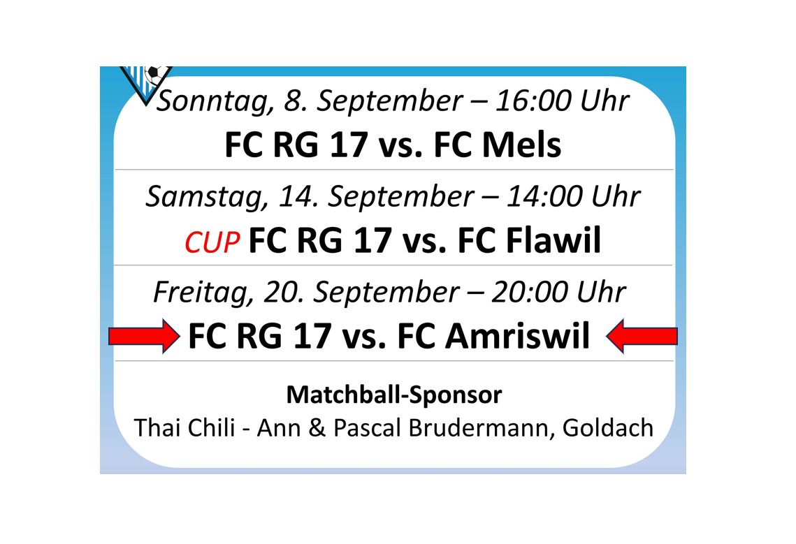 Für das Team mit Trainer Marc Blumer und Assistent Tomislav Mjatovic heisst es nun, die richtigen Schlüsse zu ziehen. Wiedergutmachung ist angesagt gegen den FC Amriswil. Danach folgen die Spitzenspiele gegen Vaduz 2 (auswärts 29.9. Sonntag, 12 h) und Romanshorn (Kellen, 5.10. Samstag, 16 h). Danach werden wir sehen, ob unser Team bereits in Richtung 2. Liga Interregional schielen kann. Hopp FC Rorschach-Goldach 17!