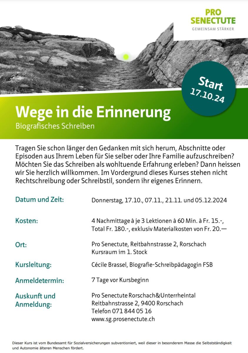 Die wichtigsten Infos dazu findet man auf dem Flyer unten. Das ganze Kursangebot der Pro Senectute Rorschach findet man hier.