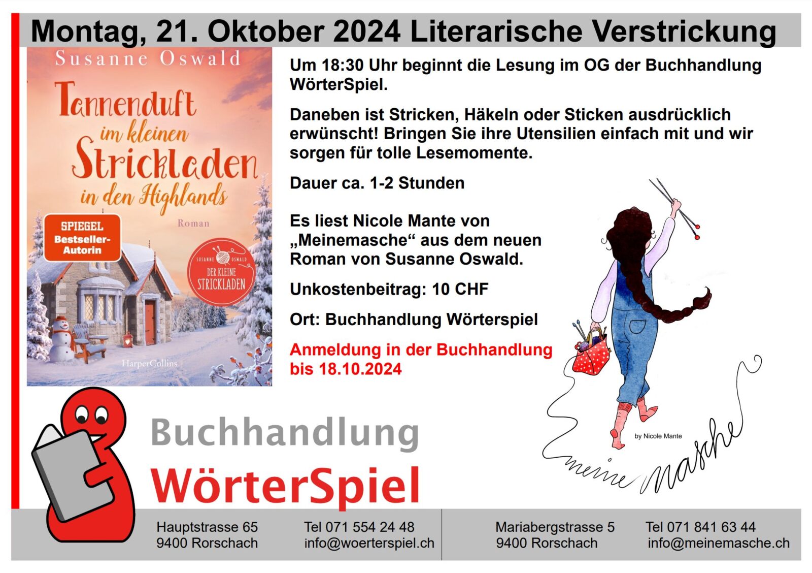 Wer also noch dringend was aus der Buchhandlung WörterSpiel haben muss kann das diese Woche noch erledigen. Vom 14. bis 20. Oktober 2024 hat das WörterSpiel geschlossen. Das nächste Highlight unmittelbar nach den Ferien: