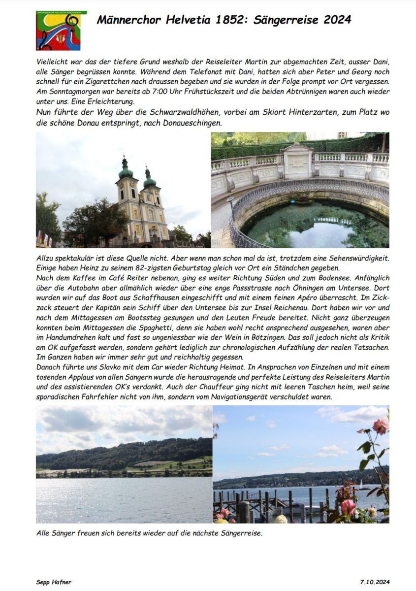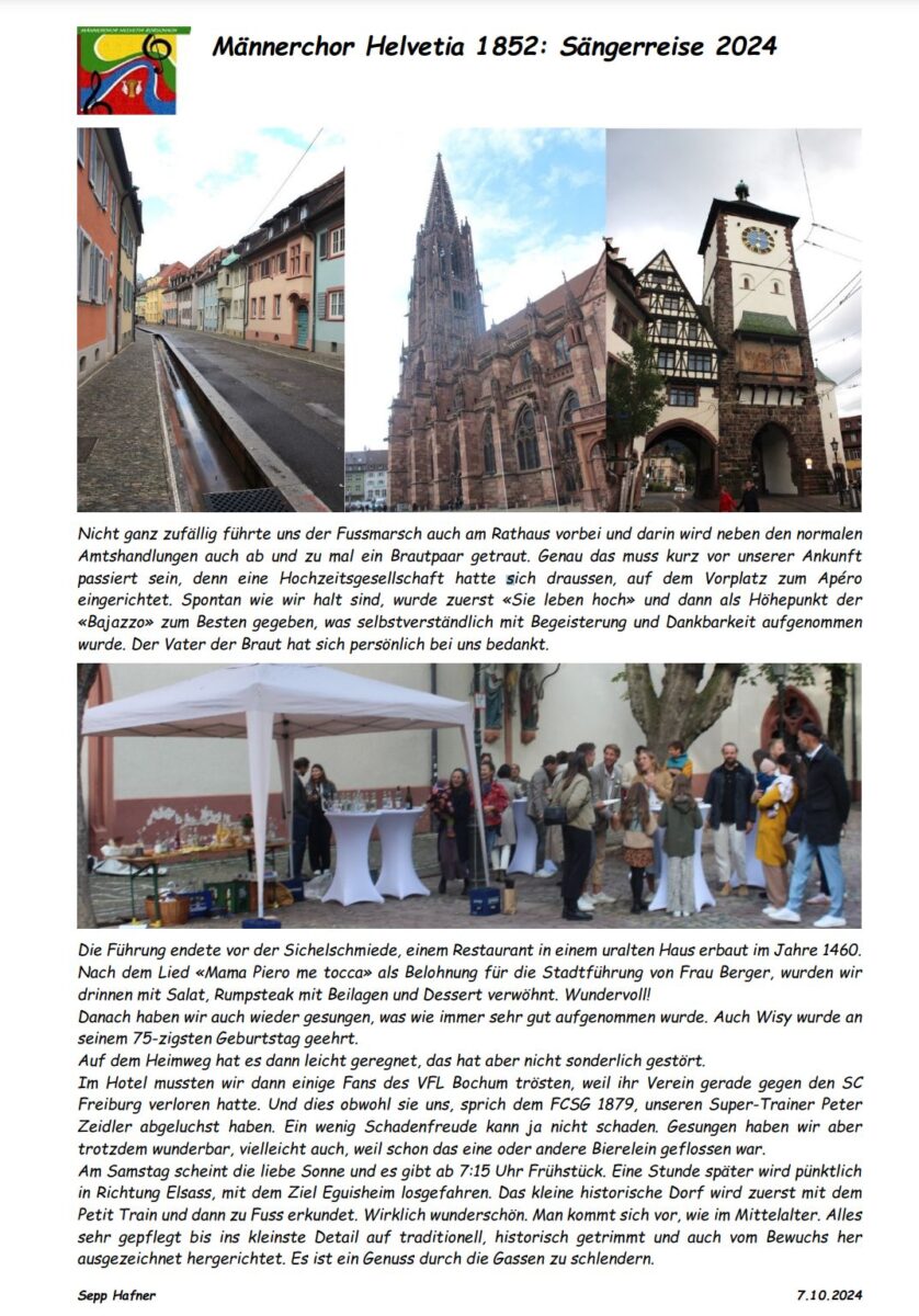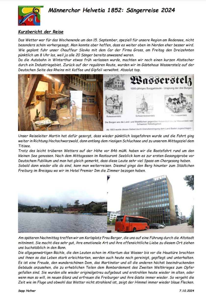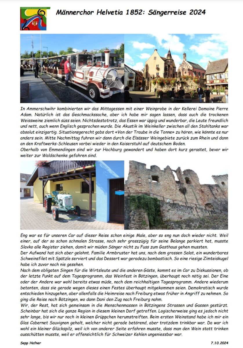 Der Männerchor Helvetia war auch noch unterwegs…Themen:KulturRorschach 12. Oktober 2024 - 05:30Das Rorschacher Echo hat noch den Bericht zur Männerchor-Reise 2024 erhalten. Voilà: Teilen mit: Einen Link per E-Mail an einen Freund senden (Wird in neuem Fenster geöffnet) E-Mail Drucken (Wird in neuem Fenster geöffnet) Drucken Auf Facebook teilen (Wird in neuem Fenster geöffnet) Facebook Auf X teilen (Wird in neuem Fenster geöffnet) X Auf WhatsApp teilen (Wird in neuem Fenster geöffnet) WhatsApp Gefällt mir:Gefällt mir Wird geladen …Newsletter abonnieren Bitte dieses Feld leer lassenBitte wähle, ob Du über jeden neuen Beitrag sofort oder lieber jeden Morgen gegen 9 Uhr eine Zusammenfassung der neusten Beiträge erhalten möchtest.Liste(n) auswählen: Neues vom Echo (Zusammenfassung) Neues vom Echo (Sofortbenachrichtigung) Dieses Feld wird benötigt.Prüfen Sie Ihren Posteingang und den Spamordner, um Ihr Abonnement zu bestätigen.