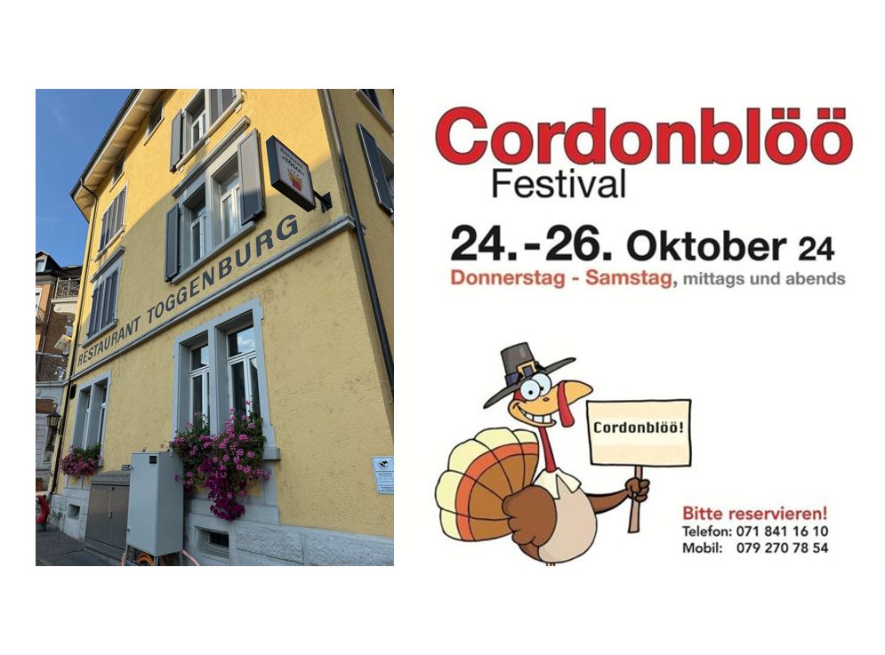 Ab morgen Cordonblöö-Festival im TöggiThemen:BeizenKulturRorschach 23. Oktober 2024 - 05:37Cordonblöö-Fans kommen ab morgen Donnerstag im Töggi an der Kirchstrasse wieder voll auf ihre Rechnung – aber nur, wenn man auch rechtzeitig reserviert. Insider wissen warum…Teilen mit: Einen Link per E-Mail an einen Freund senden (Wird in neuem Fenster geöffnet) E-Mail Drucken (Wird in neuem Fenster geöffnet) Drucken Auf Facebook teilen (Wird in neuem Fenster geöffnet) Facebook Auf X teilen (Wird in neuem Fenster geöffnet) X Auf WhatsApp teilen (Wird in neuem Fenster geöffnet) WhatsApp Gefällt mir:Gefällt mir Wird geladen …Newsletter abonnieren Bitte dieses Feld leer lassenBitte wähle, ob Du über jeden neuen Beitrag sofort oder lieber jeden Morgen gegen 9 Uhr eine Zusammenfassung der neusten Beiträge erhalten möchtest.Liste(n) auswählen: Neues vom Echo (Zusammenfassung) Neues vom Echo (Sofortbenachrichtigung) Dieses Feld wird benötigt.Prüfen Sie Ihren Posteingang und den Spamordner, um Ihr Abonnement zu bestätigen.