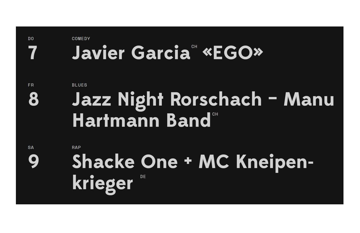 Comedy, Blues und Rap im Rorschacher TreppenhausThemen:BeizenKulturRorschachTreppenhaus 5. November 2024 - 05:15Diese Woche am Donnerstag, Freitag und Samstag live in Rorschach. Mehr Infos rund um das Treppenhaus gibt es immer auch hier, hier und hier.Teilen mit: Einen Link per E-Mail an einen Freund senden (Wird in neuem Fenster geöffnet) E-Mail Drucken (Wird in neuem Fenster geöffnet) Drucken Auf Facebook teilen (Wird in neuem Fenster geöffnet) Facebook Auf X teilen (Wird in neuem Fenster geöffnet) X Auf WhatsApp teilen (Wird in neuem Fenster geöffnet) WhatsApp Gefällt mir:Gefällt mir Wird geladen …Newsletter abonnieren Bitte dieses Feld leer lassenBitte wähle, ob Du über jeden neuen Beitrag sofort oder lieber jeden Morgen gegen 9 Uhr eine Zusammenfassung der neusten Beiträge erhalten möchtest.Liste(n) auswählen: Neues vom Echo (Zusammenfassung) Neues vom Echo (Sofortbenachrichtigung) Dieses Feld wird benötigt.Prüfen Sie Ihren Posteingang und den Spamordner, um Ihr Abonnement zu bestätigen.