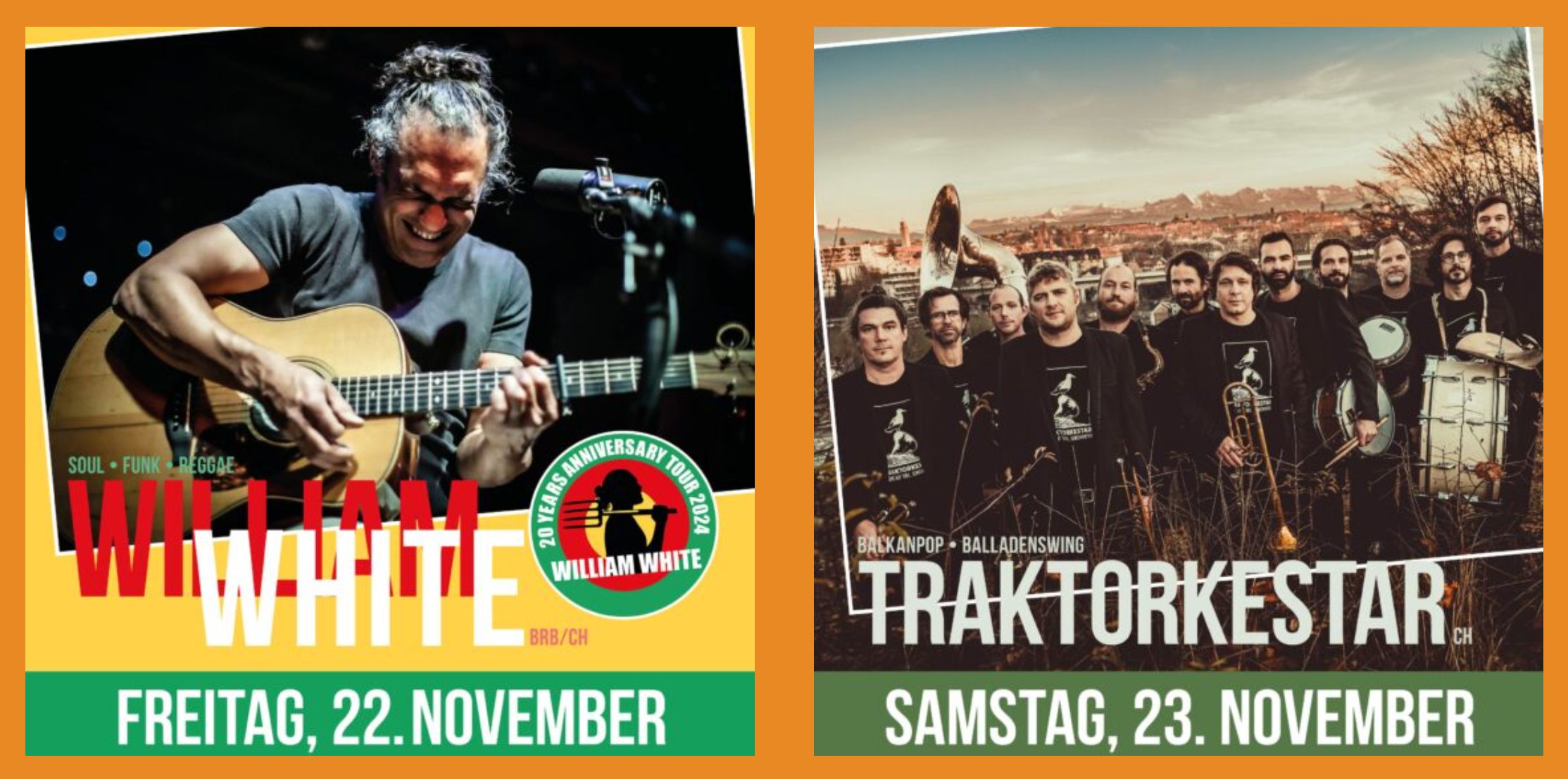 Das Rorschacher Echo verschenkt wieder je 5×2 Tickets für die beiden bevorstehenden Gigs im Rorschacher Kulturtempel Industrie36. Wer am Freitagabend William White sehen will schreibt beim Mail an mich in die Betreffzeile „Freitag“. Und „Samstag“ schreiben jene, die das wilde Bläser-Dutzend „Traktorkestar“ nicht verpassen wollen. Alles klar? Die Gewinner erhalten ein Mail von mir und eine Kopie geht an den Veranstalter. Viel Glück!! (Bilder: pd ind36 abm)