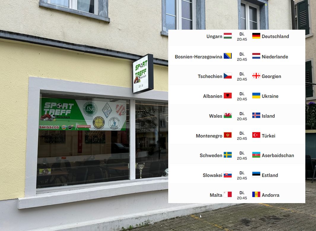 6. und letzter Tag der Fussball-Länderspiele rund um die Nations-League. Einige Spiele werden bei Nermin und seinem Team im SportTreff Rorschach an der Bäumlistorkelstrasse 9 live zu sehen sein.