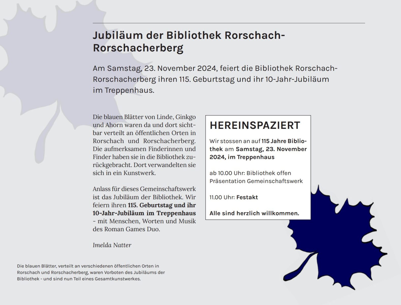 Was wird uns das Gemeinschaftswerk heute zeigen?Themen:KulturRorschach 23. November 2024 - 05:10Ein bisschen Spannung muss bleiben… Das Rorschacher Echo wird dann noch kurz bei der Bibliothek vorbeischauen…Teilen mit: Einen Link per E-Mail an einen Freund senden (Wird in neuem Fenster geöffnet) E-Mail Drucken (Wird in neuem Fenster geöffnet) Drucken Auf Facebook teilen (Wird in neuem Fenster geöffnet) Facebook Auf X teilen (Wird in neuem Fenster geöffnet) X Auf WhatsApp teilen (Wird in neuem Fenster geöffnet) WhatsApp Gefällt mir:Gefällt mir Wird geladen …Newsletter abonnieren Bitte dieses Feld leer lassenBitte wähle, ob Du über jeden neuen Beitrag sofort oder lieber jeden Morgen gegen 9 Uhr eine Zusammenfassung der neusten Beiträge erhalten möchtest.Liste(n) auswählen: Neues vom Echo (Zusammenfassung) Neues vom Echo (Sofortbenachrichtigung) Dieses Feld wird benötigt.Prüfen Sie Ihren Posteingang und den Spamordner, um Ihr Abonnement zu bestätigen.