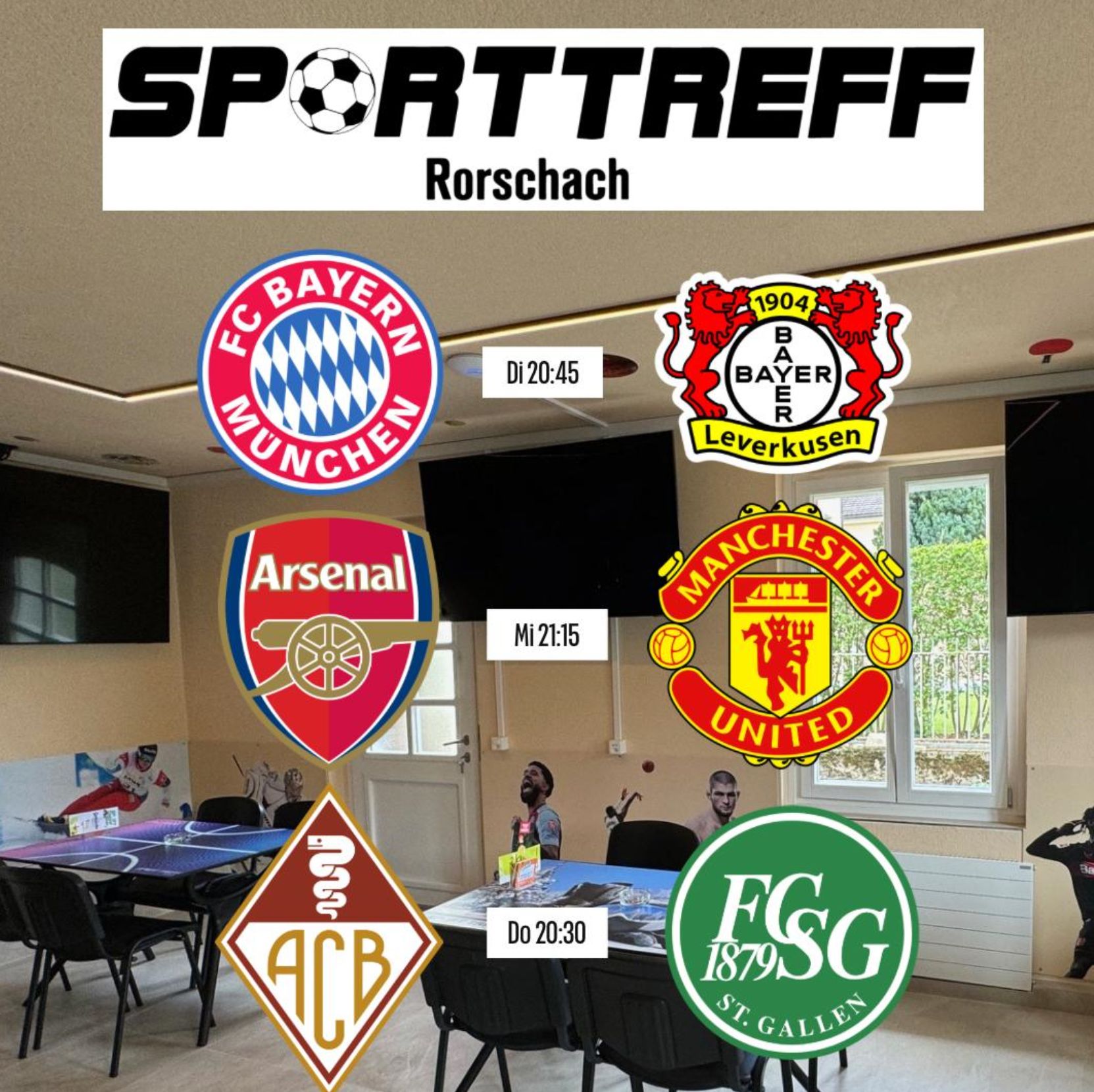 Beginnend heute Abend mit dem Cup-Knaller in Deutschland zwischen Bayern und Bayer. Live am TV dabei ist man auch im SportTreff in Rorschach.