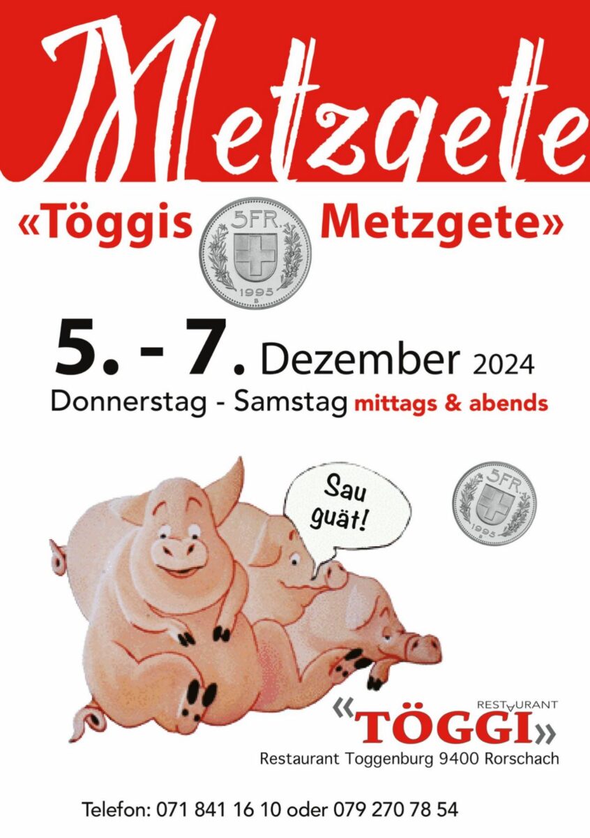 Marianne lädt im Töggi zur Füfliber-MetzgeteThemen:BeizenKulturRorschach 4. Dezember 2024 - 05:37Gilt ab morgen Donnerstag. Nur hingehen muss man selber… Und dann gibt es noch den Weihnachtsjass und wohlverdiente Ferien für das Töggi-Team:Teilen mit: Klicken, um einem Freund einen Link per E-Mail zu senden (Wird in neuem Fenster geöffnet) E-Mail Klicken zum Ausdrucken (Wird in neuem Fenster geöffnet) Drucken Klick, um auf Facebook zu teilen (Wird in neuem Fenster geöffnet) Facebook Klicke, um auf X zu teilen (Wird in neuem Fenster geöffnet) X Klicken, um auf WhatsApp zu teilen (Wird in neuem Fenster geöffnet) WhatsApp Gefällt mir:Gefällt mir Wird geladen …Newsletter abonnieren Bitte dieses Feld leer lassenBitte wähle, ob Du über jeden neuen Beitrag sofort oder lieber jeden Morgen gegen 9 Uhr eine Zusammenfassung der neusten Beiträge erhalten möchtest.Liste(n) auswählen: Neues vom Echo (Zusammenfassung) Neues vom Echo (Sofortbenachrichtigung) Dieses Feld wird benötigt.Prüfen Sie Ihren Posteingang und den Spamordner, um Ihr Abonnement zu bestätigen.