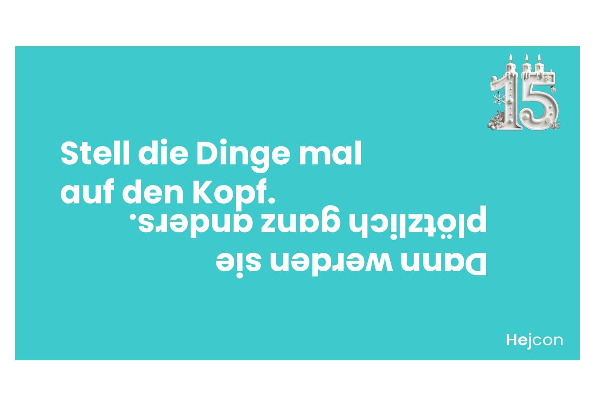 Jeanette Herzog und Patricia Castioni schreiben: „Eine fantastische Einladung für einen Perspektivenwechsel! Und in der Psychologie ein kraftvolles Werkzeug, um kreativer und lösungsorientierter zu denken. Oft sind es die gewohnten Denkmuster, die uns in unserer Wahrnehmung und Entscheidungsfindung einschränken. Indem wir die Dinge auf den Kopf stellen, brechen wir aus der Routine aus und öffnen uns für kreative Lösungen und unerwartete Möglichkeiten. Dinge auf den Kopf zu stellen, ist wie Europapark für den Geist!” (Text/Bild: pd hejcon)