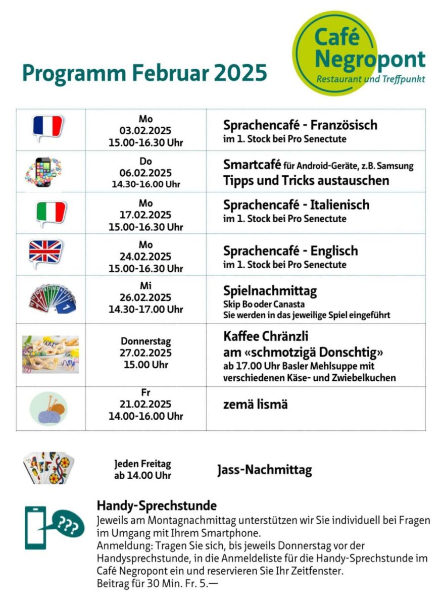 Das Monatsprogramm im Negropont RorschachThemen:BeizenKulturRorschach 2. Februar 2025 - 05:20Mehr um die vielen Aktivitäten rund um das Negropont Rorschach findet man auch hier und hier. Und was es kommende Wochen jeweils zum Zmittag gibt findet man unten:Teilen mit: Einen Link per E-Mail an einen Freund senden (Wird in neuem Fenster geöffnet) E-Mail Drucken (Wird in neuem Fenster geöffnet) Drucken Auf Facebook teilen (Wird in neuem Fenster geöffnet) Facebook Auf X teilen (Wird in neuem Fenster geöffnet) X Auf WhatsApp teilen (Wird in neuem Fenster geöffnet) WhatsApp Gefällt mir:Gefällt mir Wird geladen …Newsletter abonnieren Bitte dieses Feld leer lassenBitte wähle, ob Du über jeden neuen Beitrag sofort oder lieber jeden Morgen gegen 9 Uhr eine Zusammenfassung der neusten Beiträge erhalten möchtest.Liste(n) auswählen: Neues vom Echo (Zusammenfassung) Neues vom Echo (Sofortbenachrichtigung) Dieses Feld wird benötigt.Prüfen Sie Ihren Posteingang und den Spamordner, um Ihr Abonnement zu bestätigen.