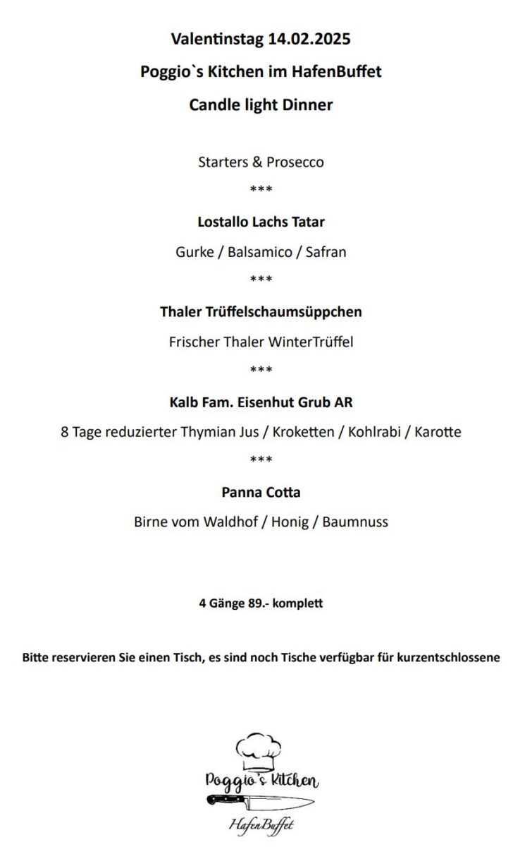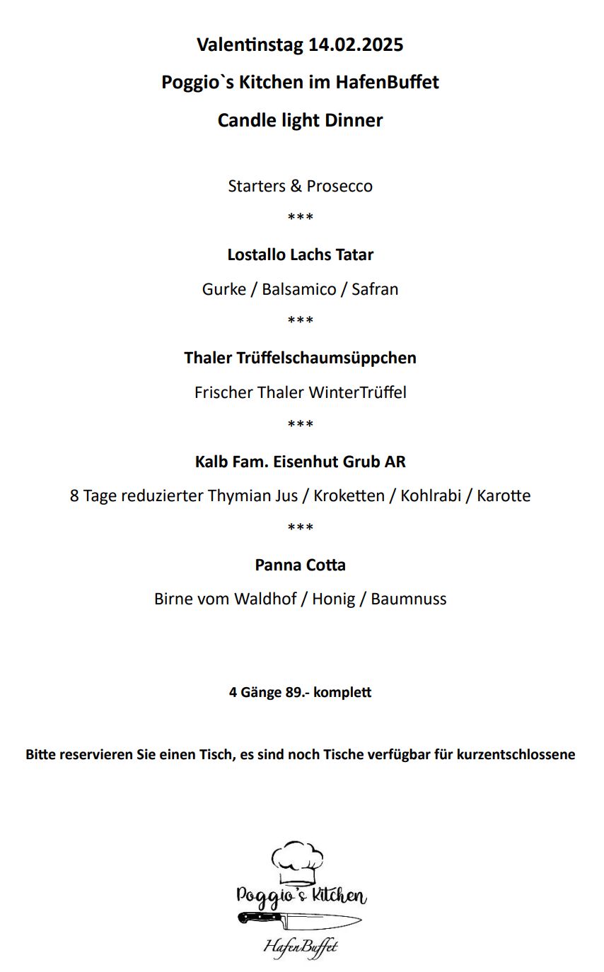 Das wäre allenfalls eine Variante (oder als zweite Achtsamkeit…) zum Valentinstag, der kommenden Freitag auf der Welt gefeiert wird. Man muss sich aber um einen Platz im HafenBuffet Rorschach bemühen.